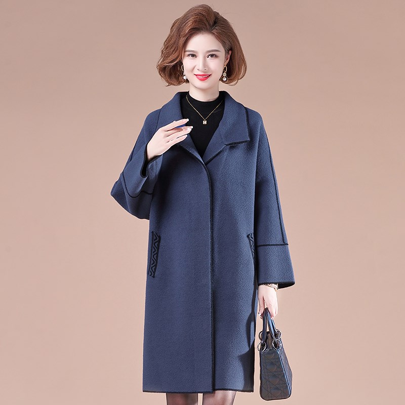 中老年女装双面呢羊绒大衣中长款洋气妈妈秋冬加肥加大码毛呢外套