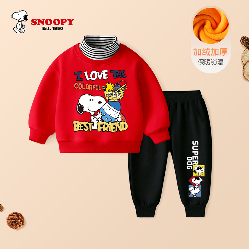 史努比男童套装2025新款冬季儿童加绒卫衣宝宝秋冬款童装加厚裤子