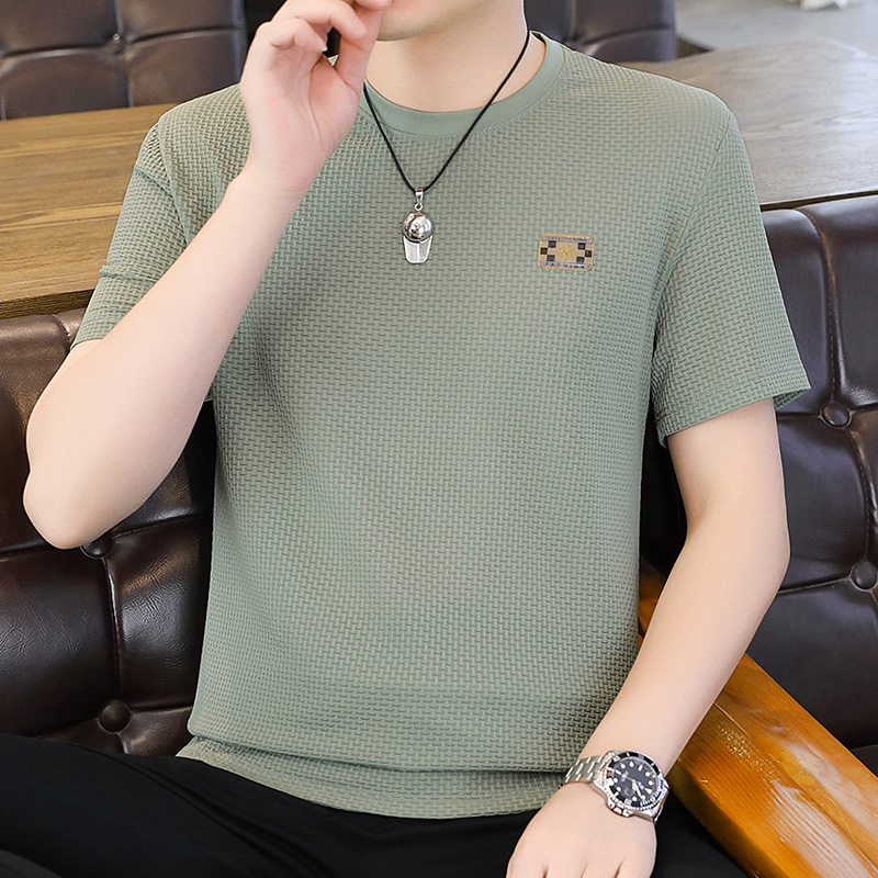 2025夏季新款男士冰丝短袖T恤小衫打底衫加肥加大码夏装速干半袖