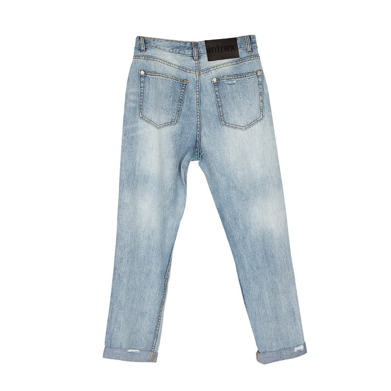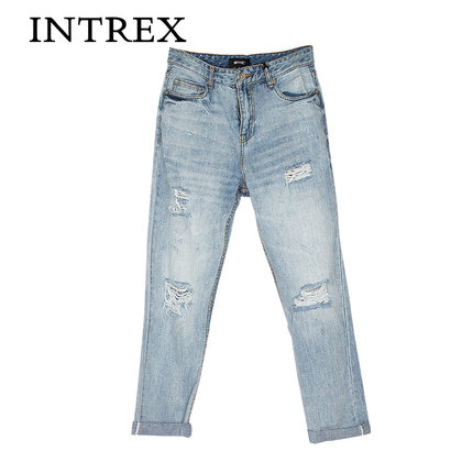 英趣秋冬男装新款破洞牛仔裤休闲裤男女同款水洗蓝色流行长裤正品