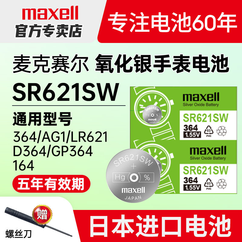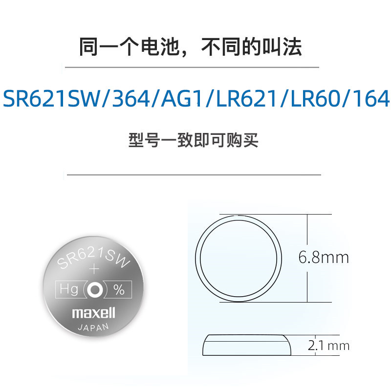 SR621SW手表电池364适用卡西欧罗西尼DW阿玛尼天梭CK飞亚达V364石英通用LR621h型号小粒纽扣电子