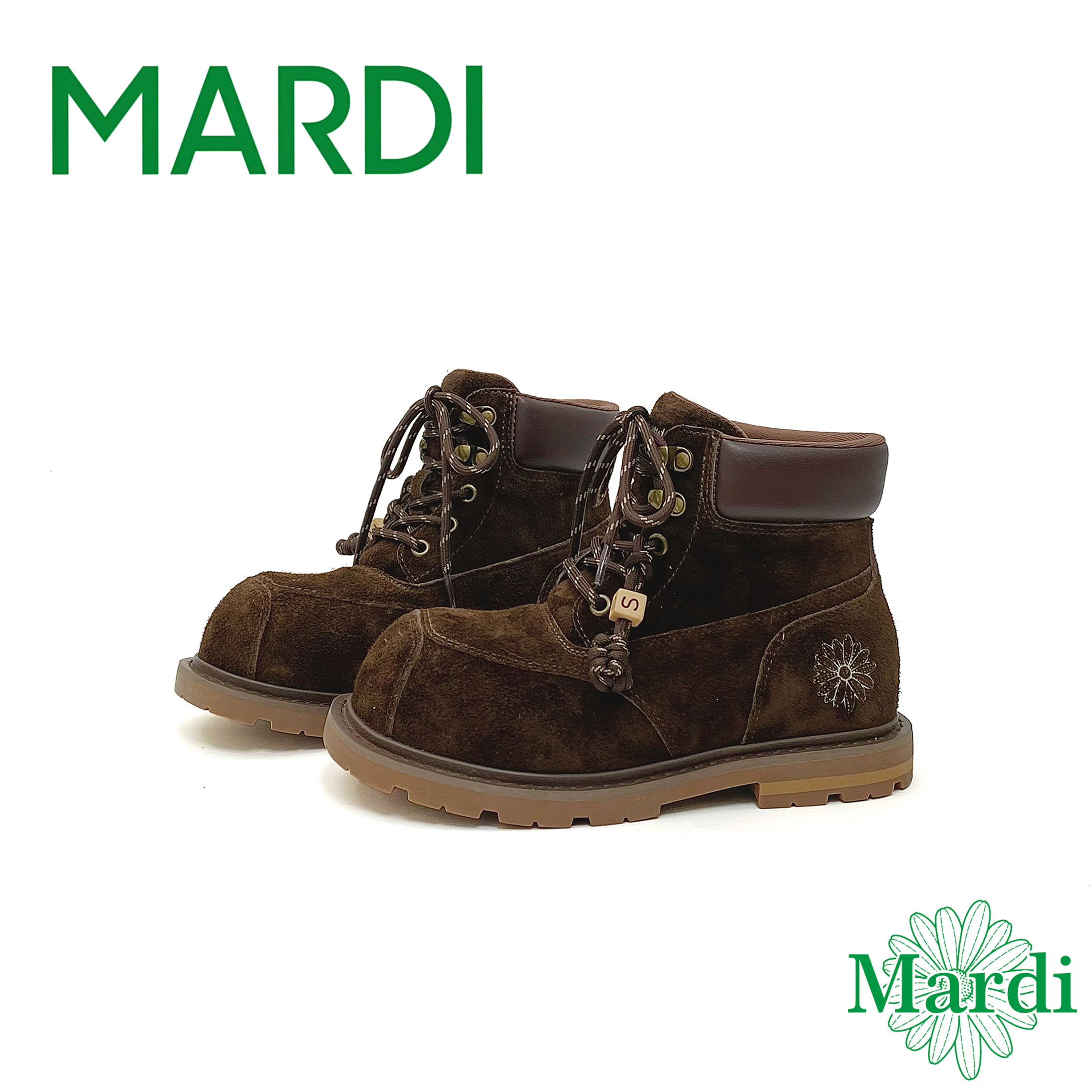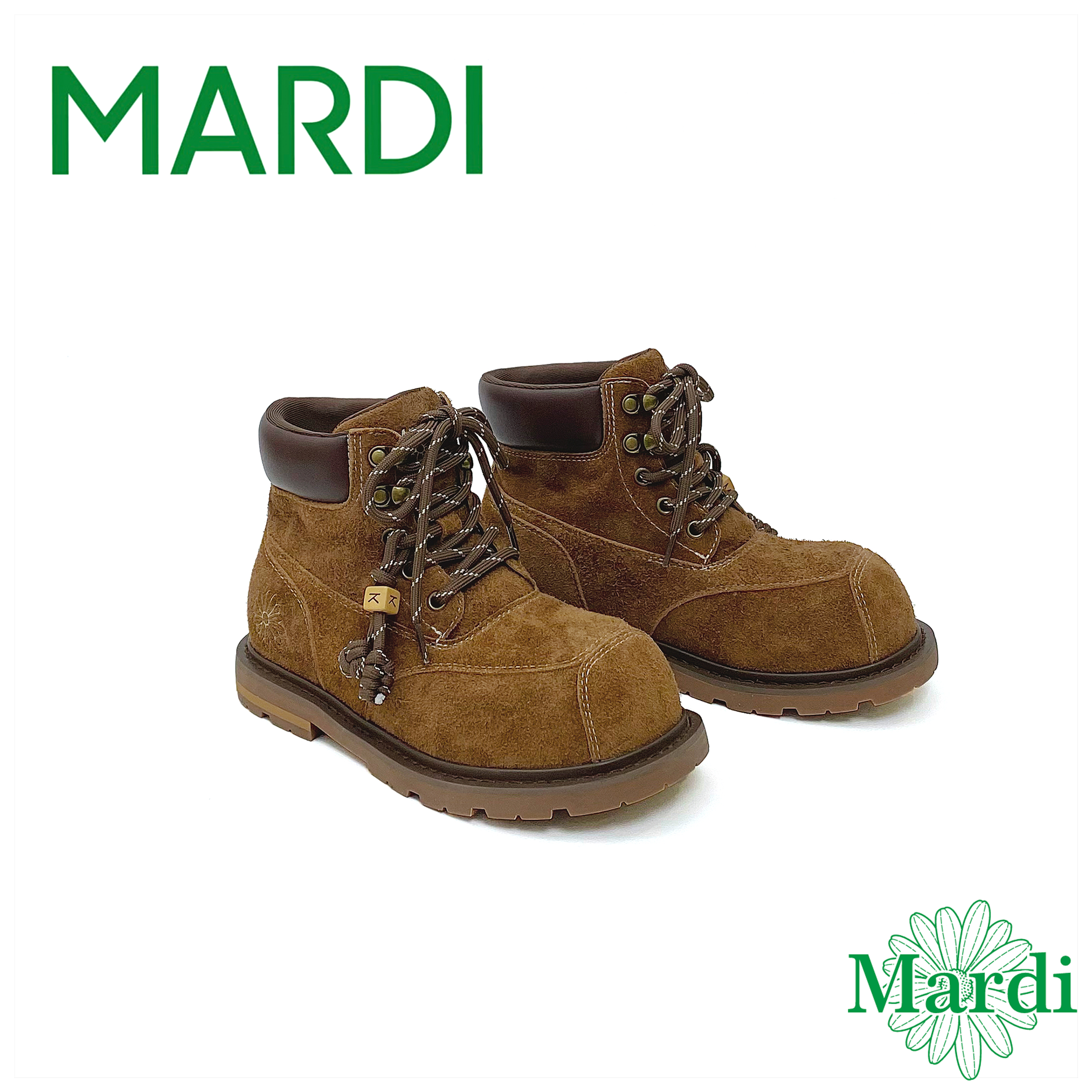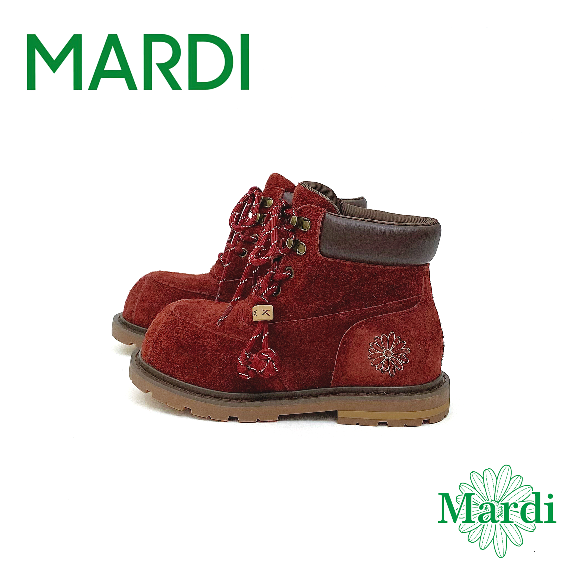 MARDI厚底马丁靴女短靴系带工装鞋头层牛皮内增高橡胶大底防滑鞋