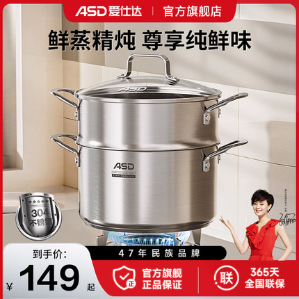 爱仕达蒸锅加厚多功能家用304不锈钢炖煮汤锅蒸笼一体锅官方正品