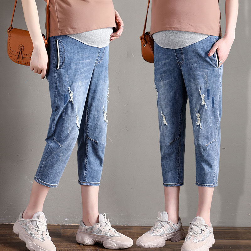 孕妇牛仔裤夏装2021新款孕妇裤宽松外穿打底七分裤夏季薄款短裤子