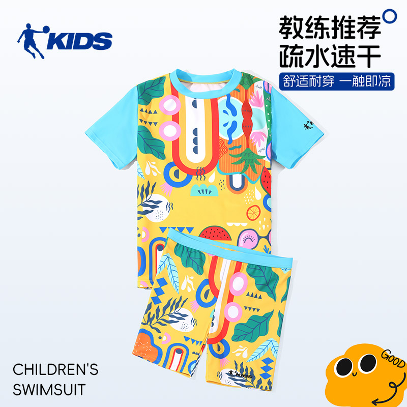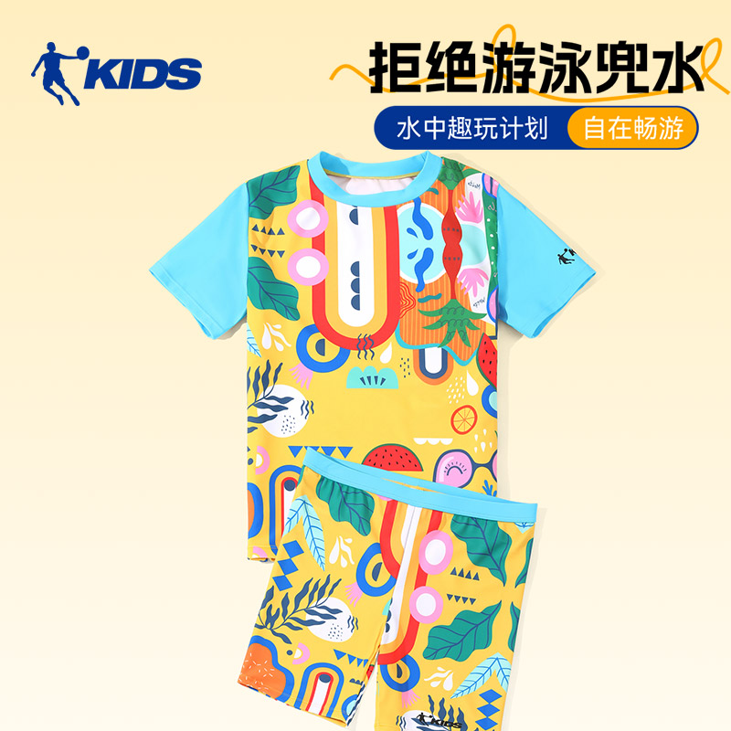 乔丹儿童泳衣男童分体2025新款男孩游泳衣中大童防晒速干游泳套装