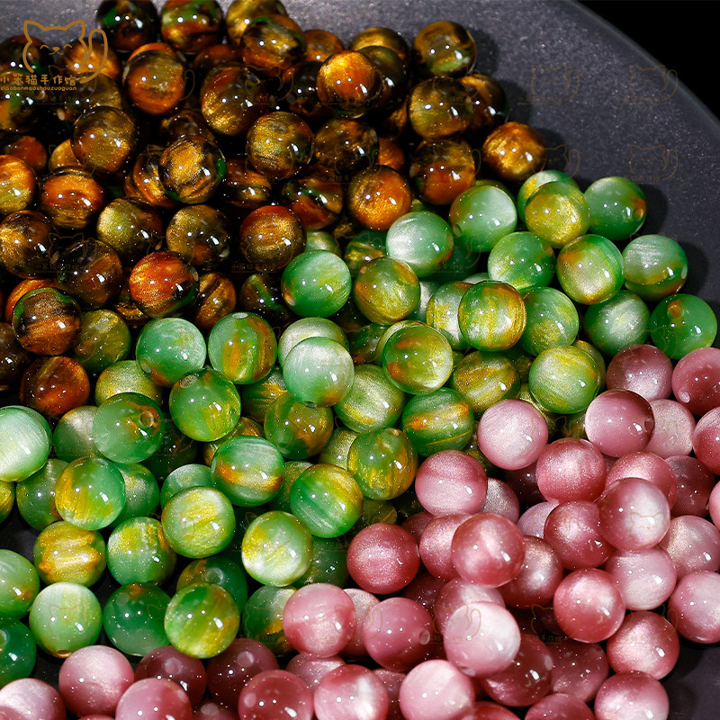 【秋日序曲】10mm琉璃氛鎏金油化树脂圆珠散珠子diy串珠手链配件