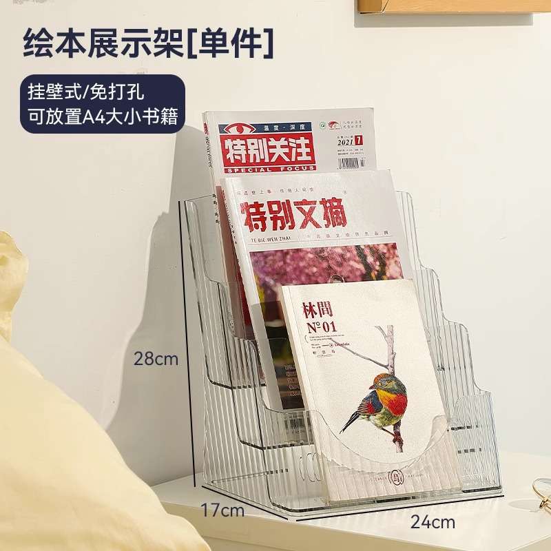 床头书架儿童亚克力透明杂志柜报宝迷你小分层置物桌面绘本收纳盒