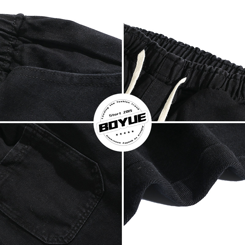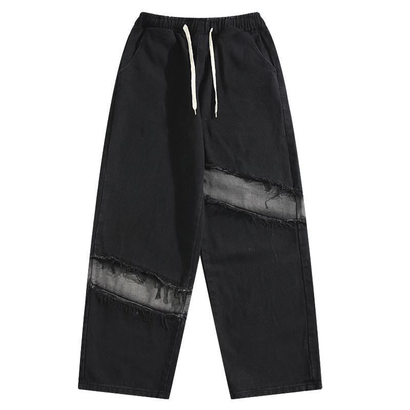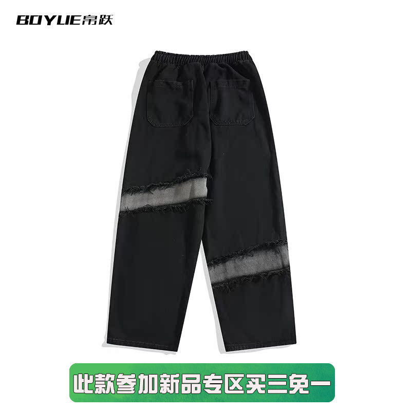 BOYUE帛跃男潮牌休闲流苏拼接牛仔裤青少年美式高街流行直筒长裤