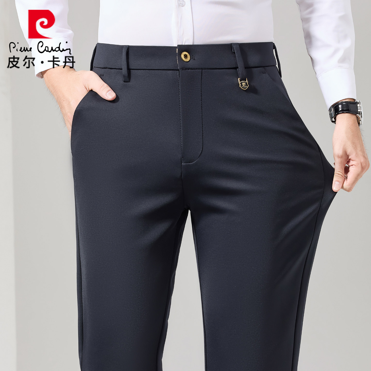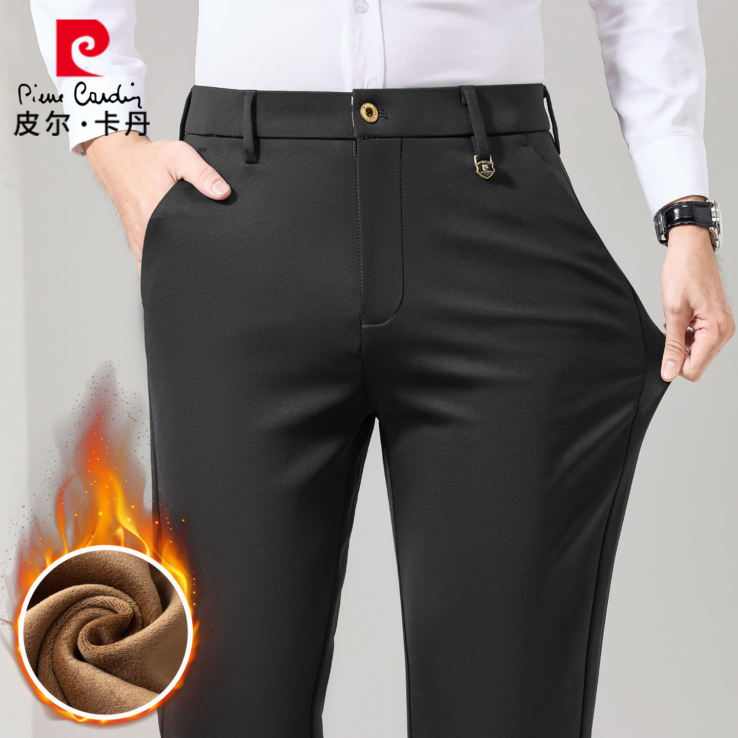 皮尔卡丹新款加绒加厚中年男士休闲裤男秋冬季商务直筒品牌西裤子