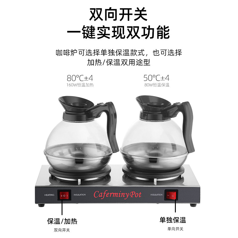 单双头咖啡炉保温炉双头咖啡壶电加热保温1.5升钢底1.8升咖啡机