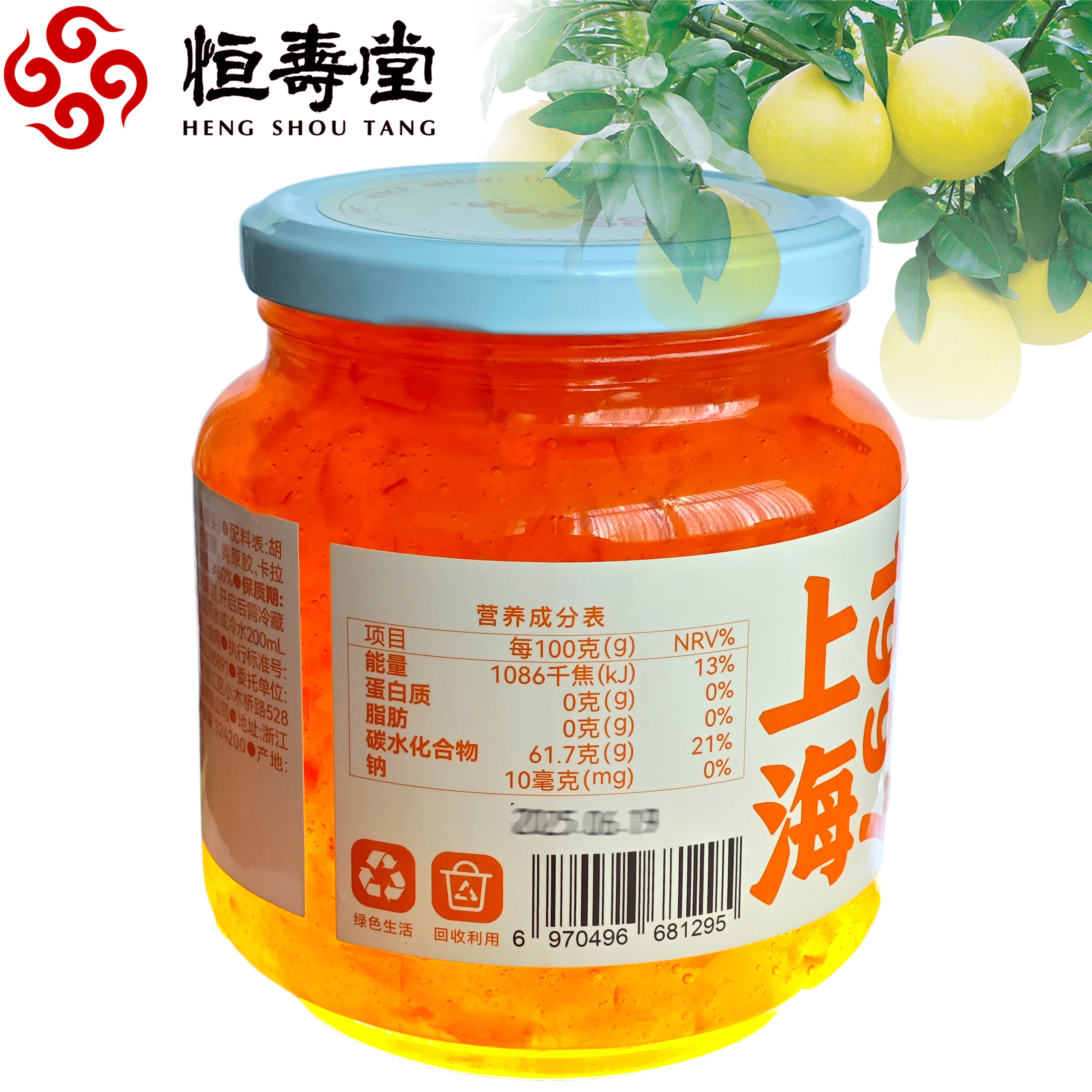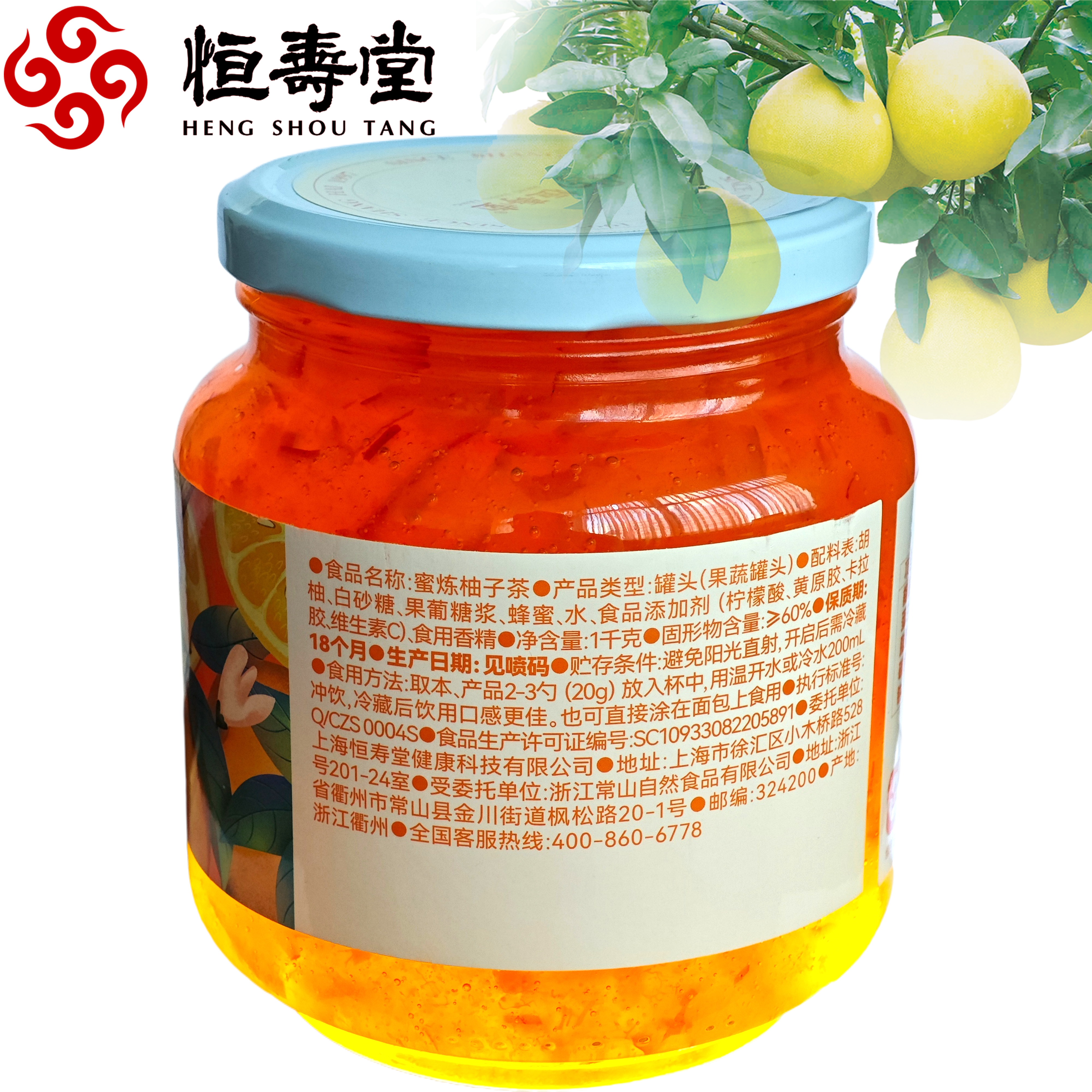 恒寿堂蜜炼柚子茶1000g大罐
