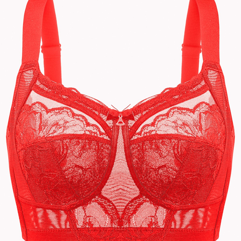 本命年红色内衣女超薄款蕾丝无钢圈全罩杯文胸大胸显小收副乳胸罩