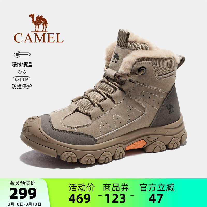 骆驼男鞋高帮棉鞋秋冬新款加绒雪地靴男士户外休闲运动登山徒步鞋