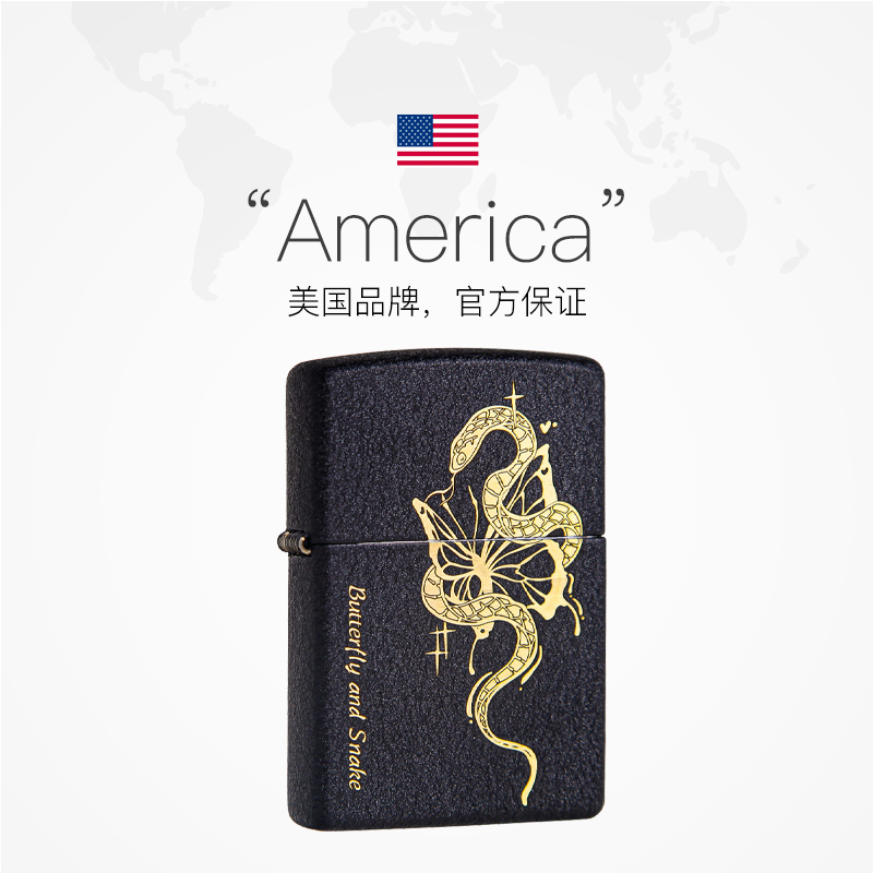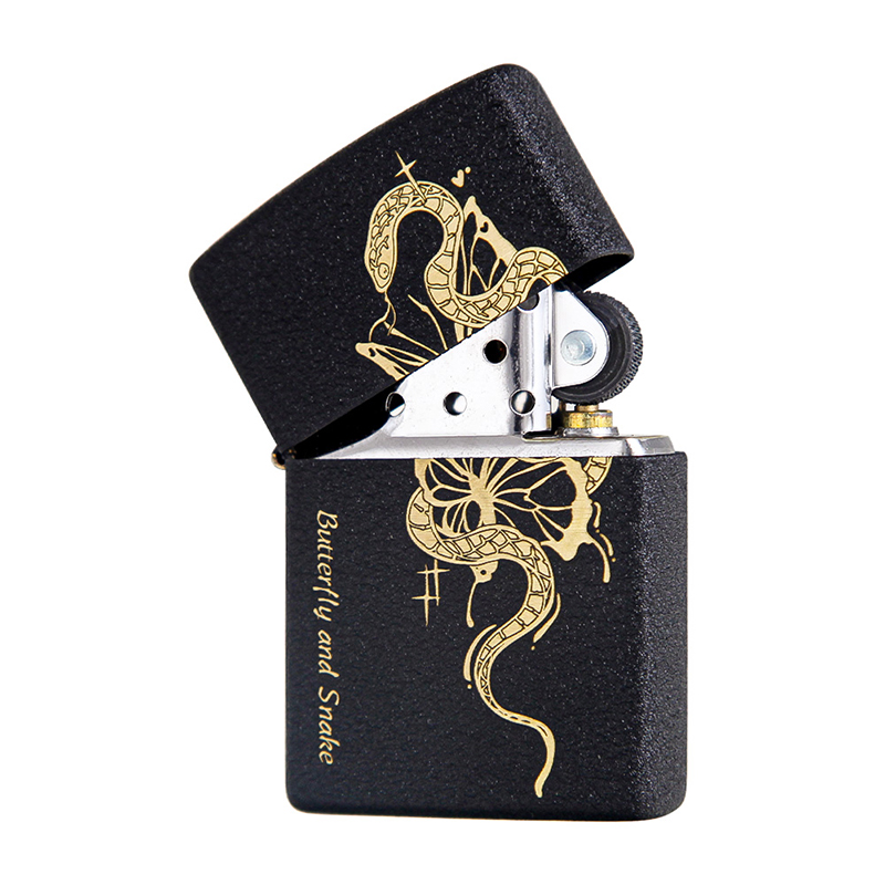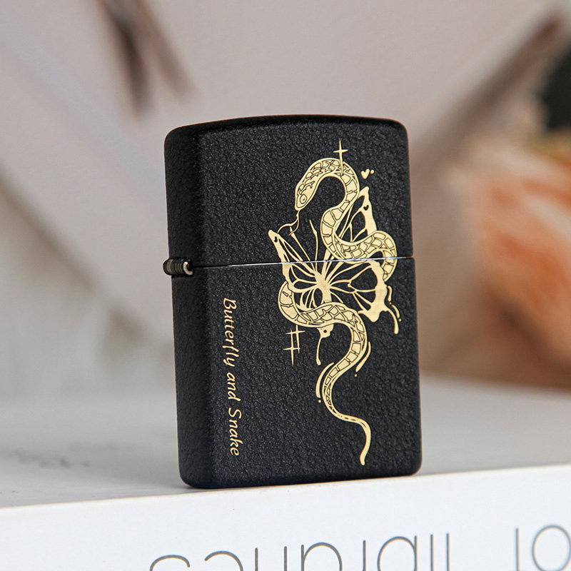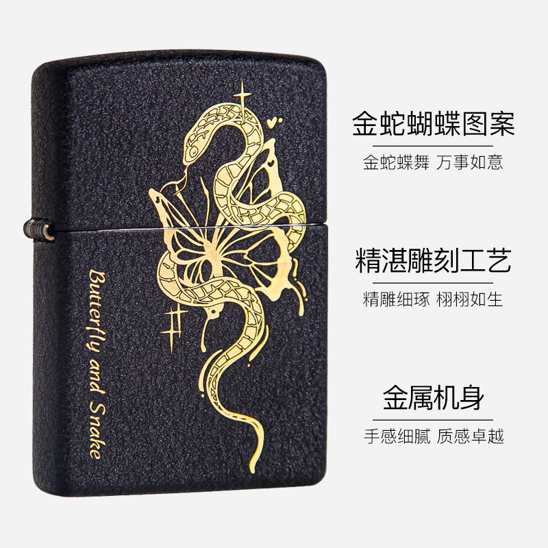 【自营】Zippo官方正品幻蝶蛇影黑裂漆防风煤油打火机送男友送礼