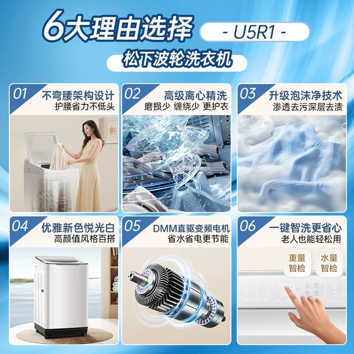 松下白月光直驱变频10KG大容量全自动波轮洗衣机离心洗羽绒洗U5R1