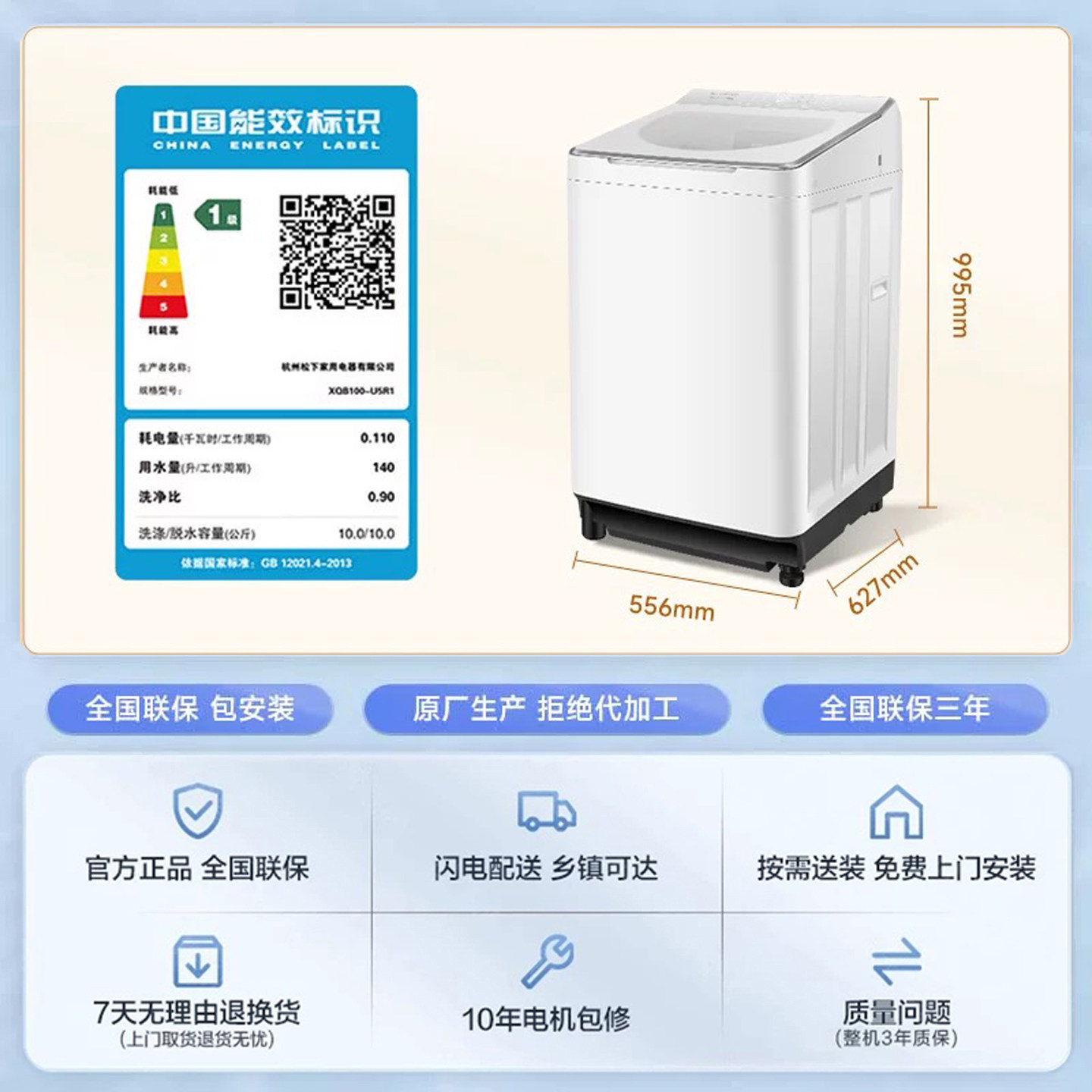 松下直驱变频10kg家用波轮洗衣机