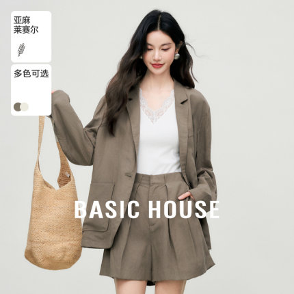 Basic House/百家好经典平驳领秋季新款简约纯色通勤小西装外套女