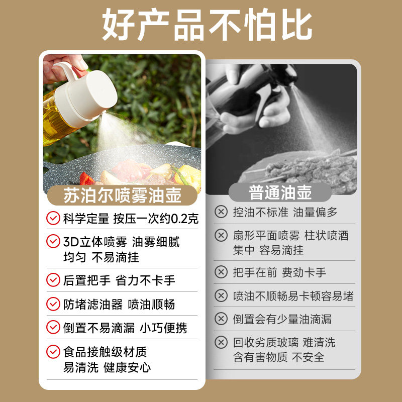 苏泊尔喷油壶雾化空气炸锅喷油瓶家用厨房玻璃油壶防漏不易挂油