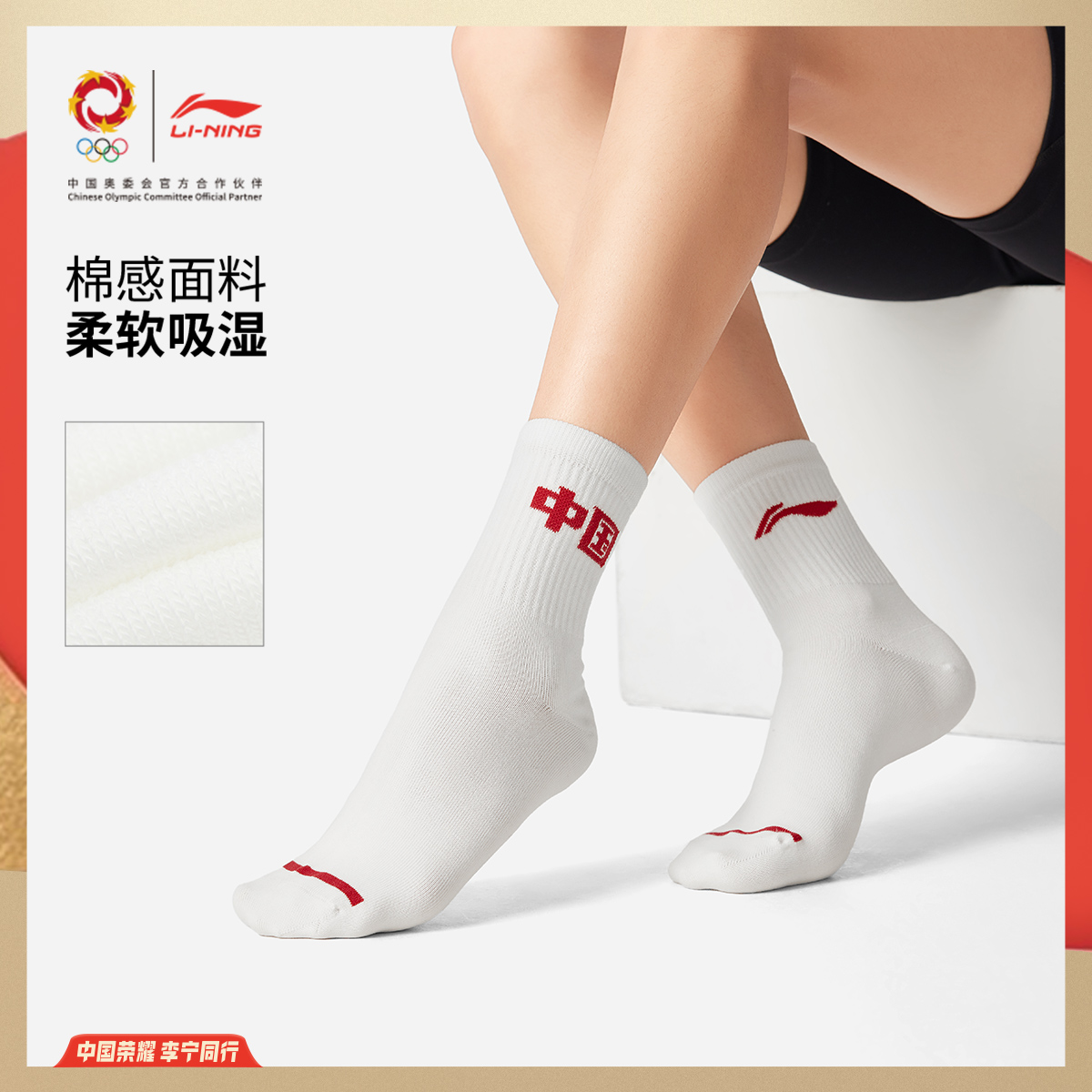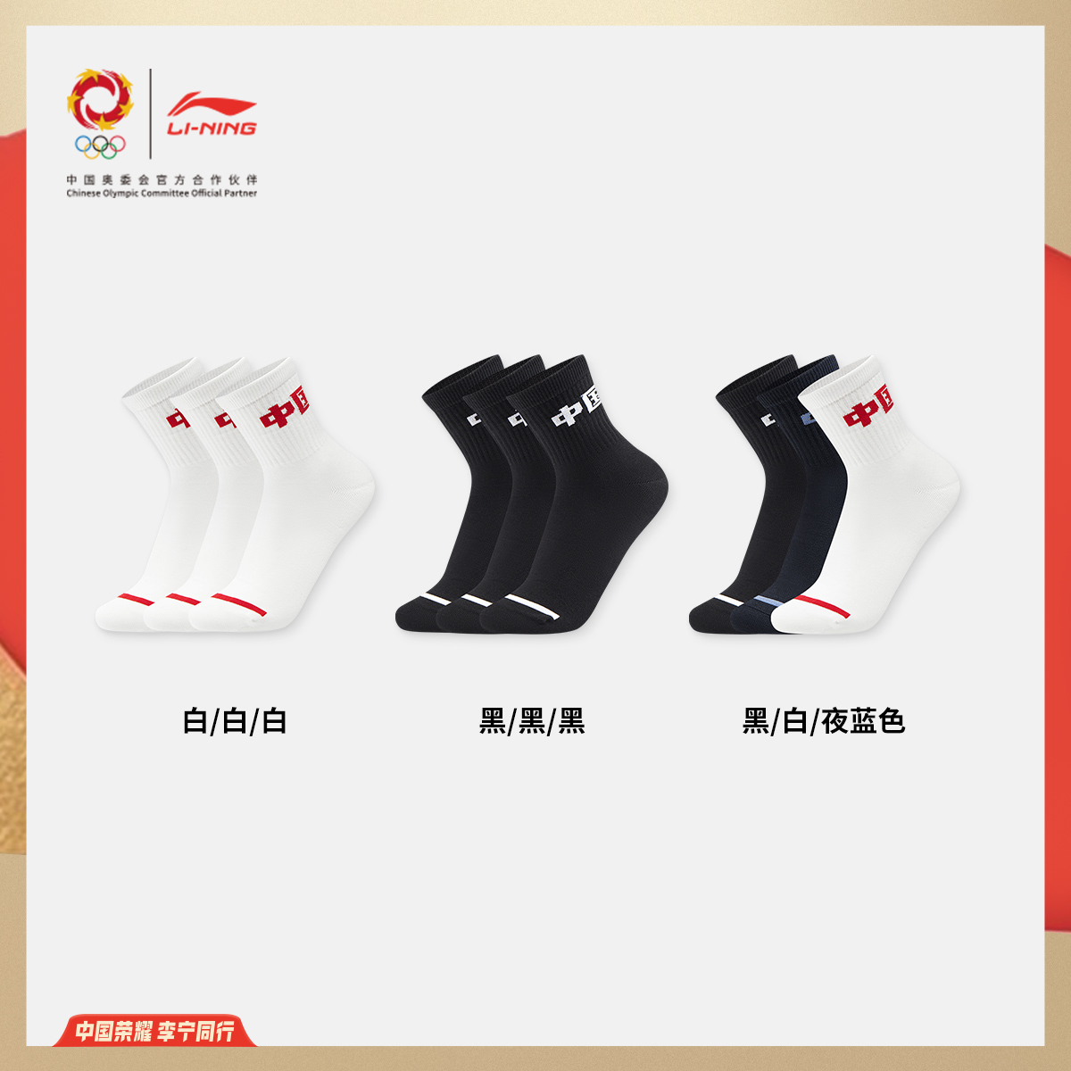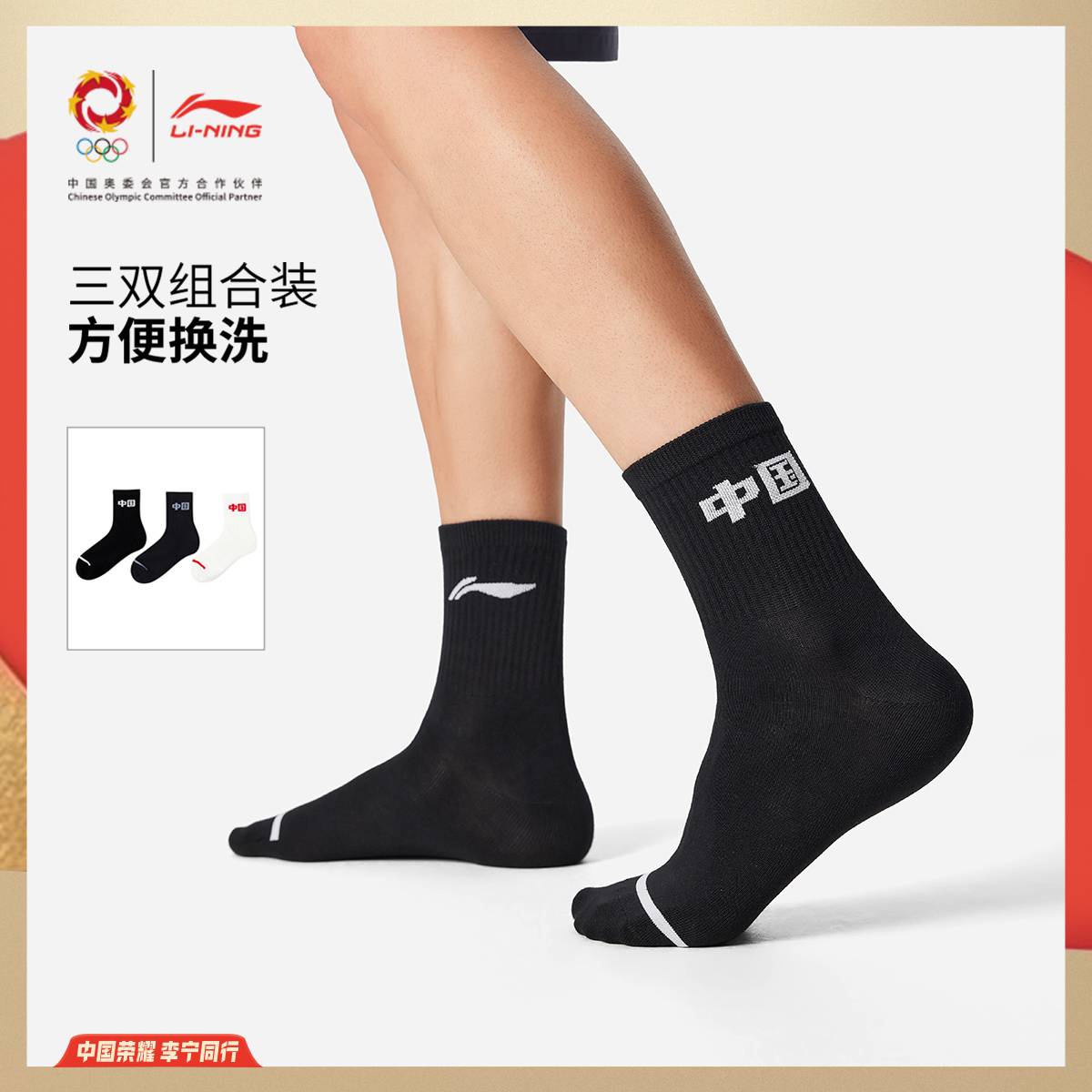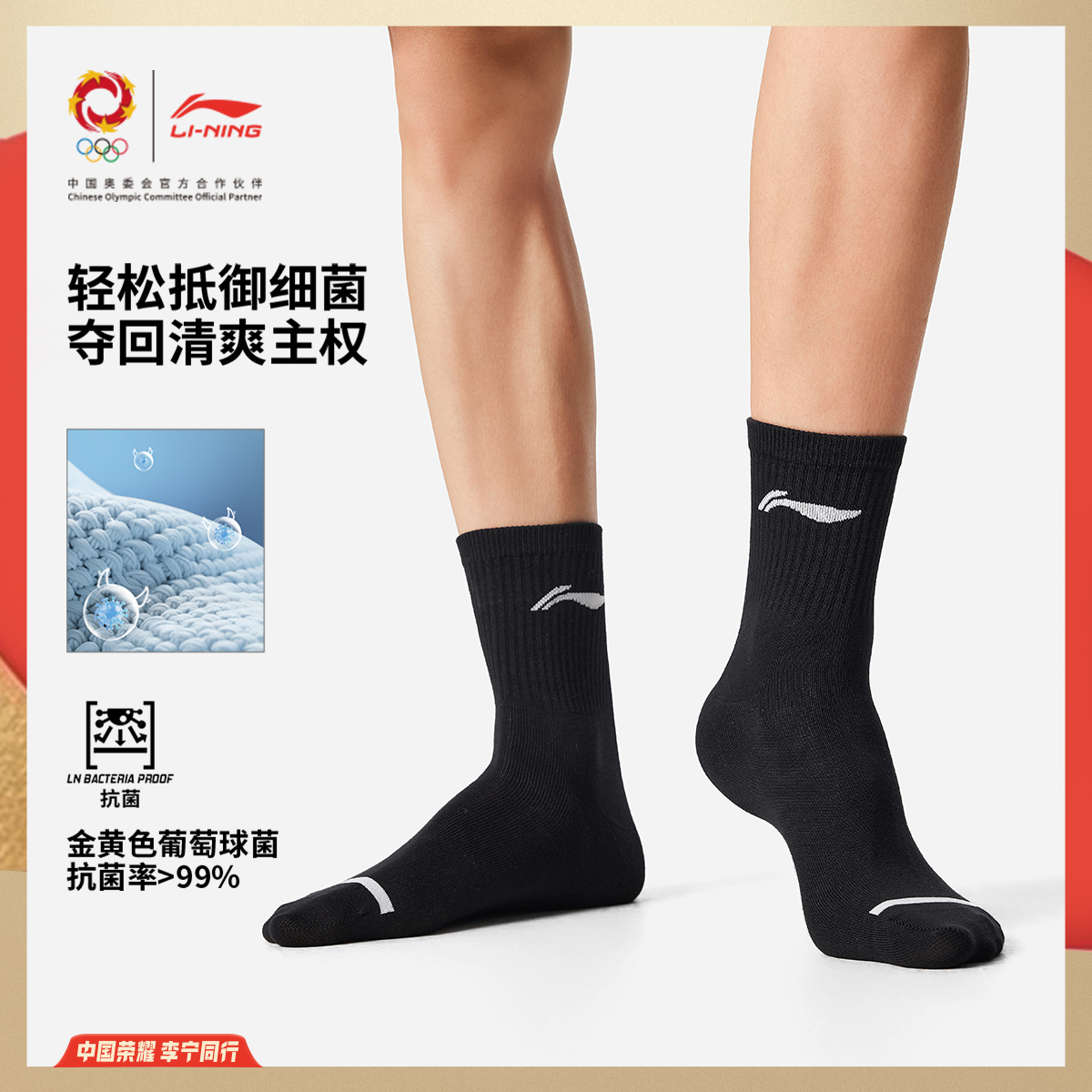 李宁荣耀系列中筒中袜男女士25新款正品抗菌长袜三双装运动袜子