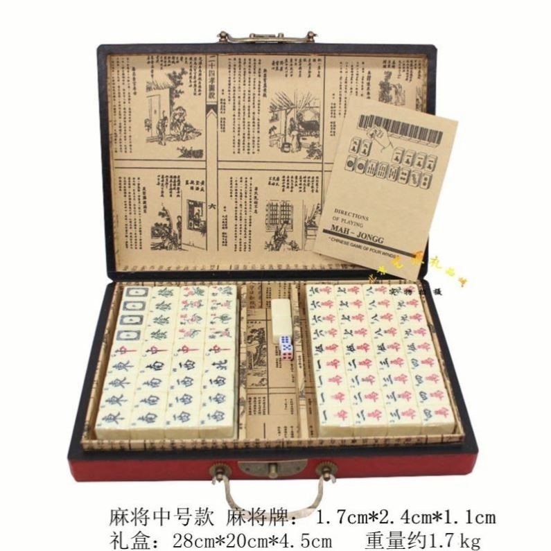 家用宿舍出口复古麻将牌支持顺丰木盒仿古麻将送老外国风礼品盒装