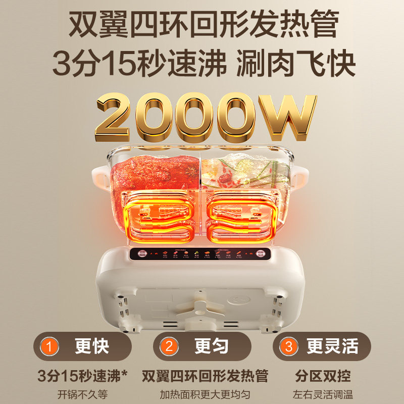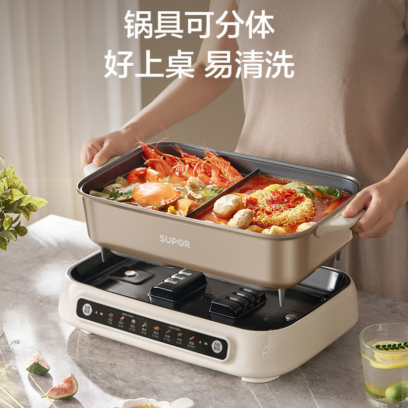 苏泊尔电火锅鸳鸯锅家用6L大容量分体式多功能料理电热锅火锅新品