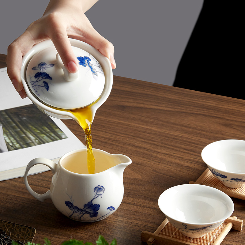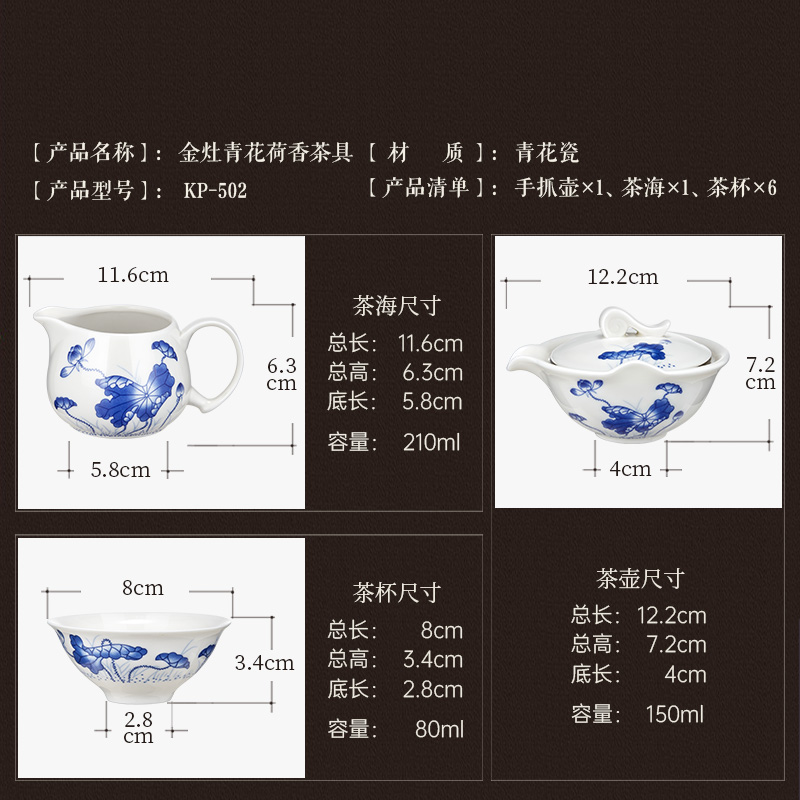 金灶KP-502功夫茶具套装青花陶瓷潮汕工夫茶泡茶具盖碗茶海全套