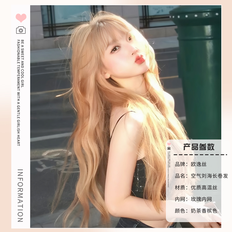 【天光映羽】rose同款假发女奶茶香槟金色大波浪长卷发整顶仿真发