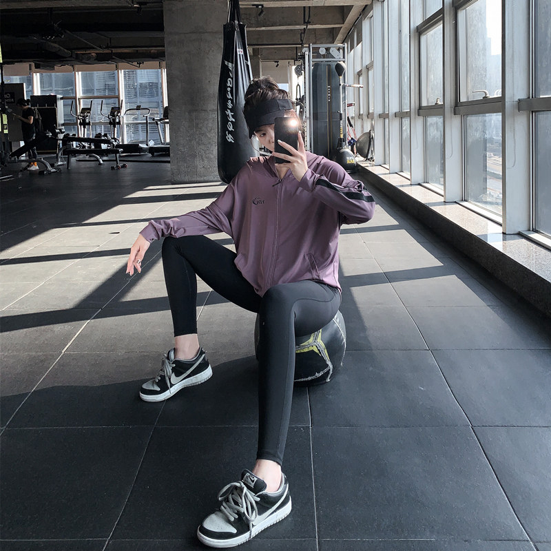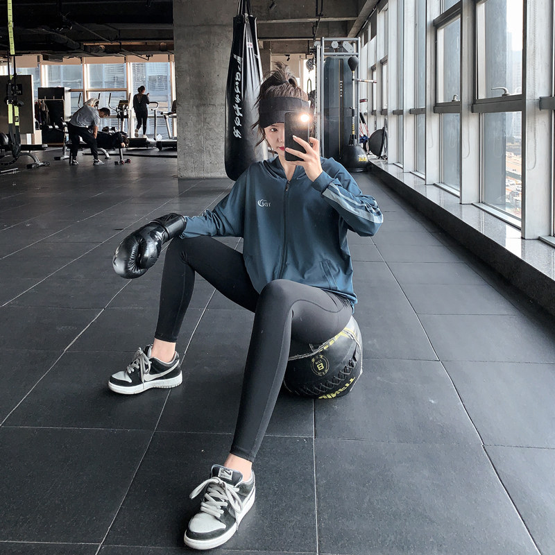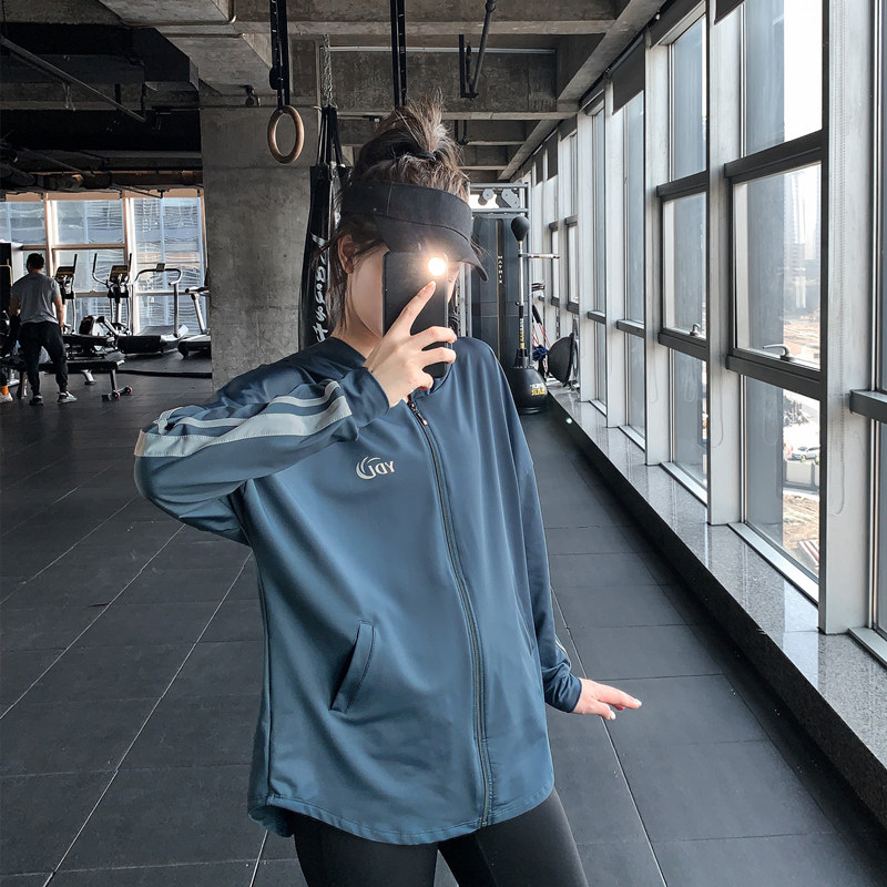 宽松大码胖mm女健身服瑜伽上衣速干跑步罩衫显瘦拉链连帽运动外套