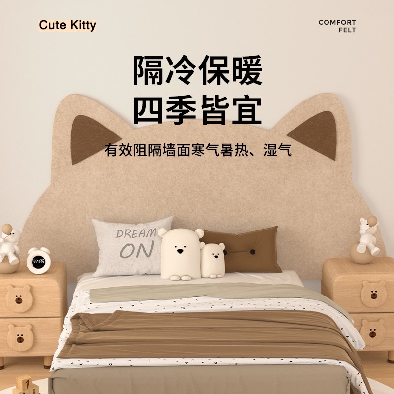 可爱猫咪毛毡墙贴儿童房墙w面布置装饰防撞护墙板免打孔遮丑墙围