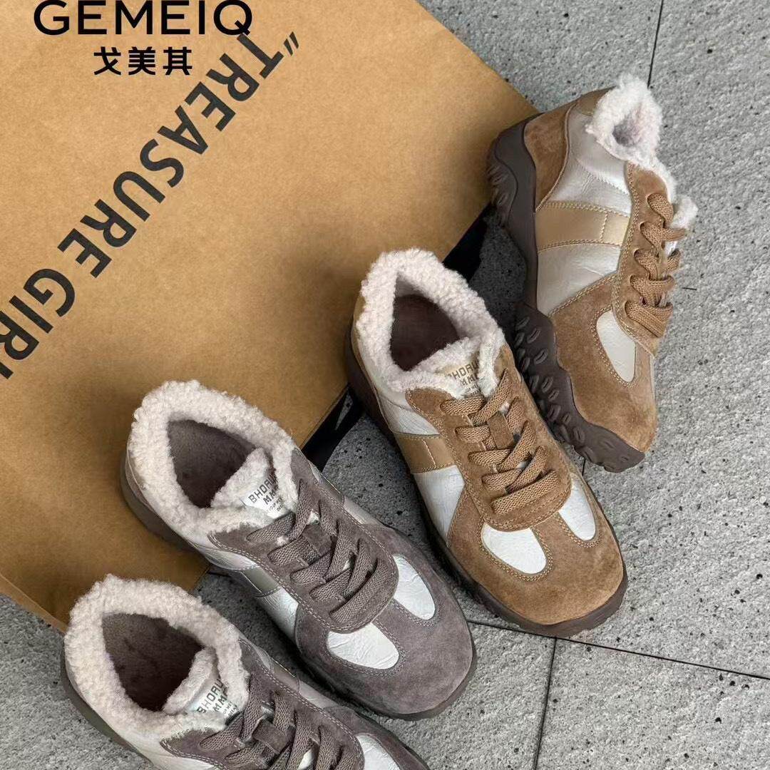 戈美其真皮阿甘鞋女冬季新款加绒保暖运动鞋商场同款鞋清仓断码