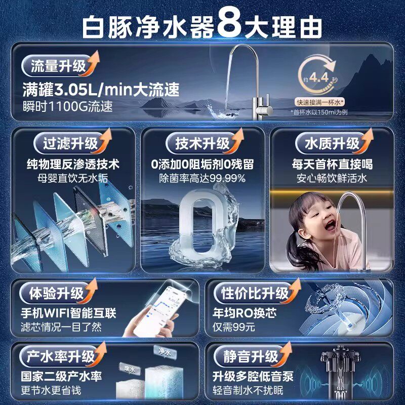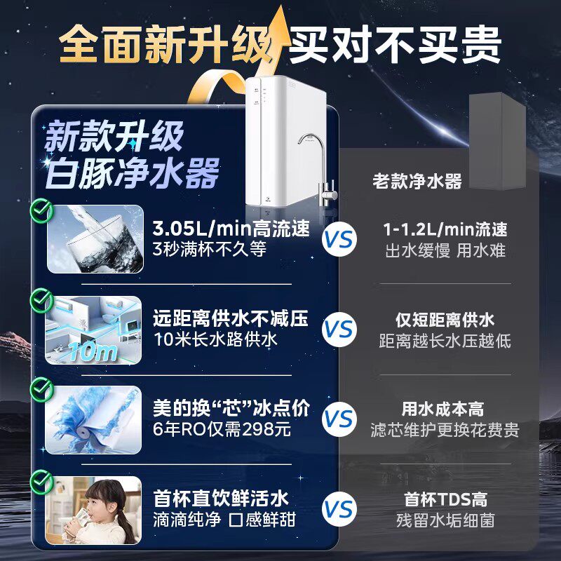 美的净水器家用直饮1100G流速厨房RO反渗透新款华凌十大官方正品