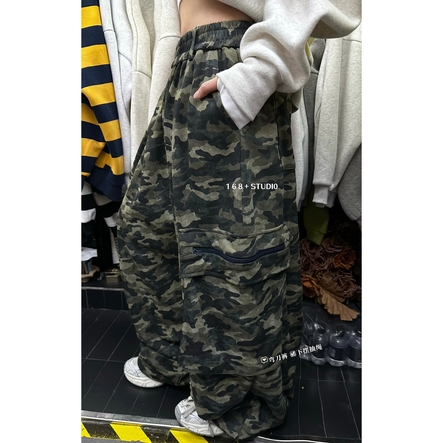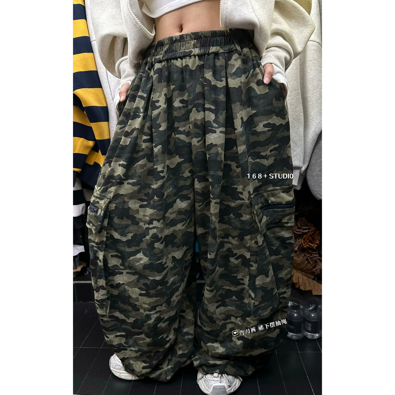 迷彩高腰休闲运动裤女2025新款爆款宽松韩版大码洋气阔腿裤设计感