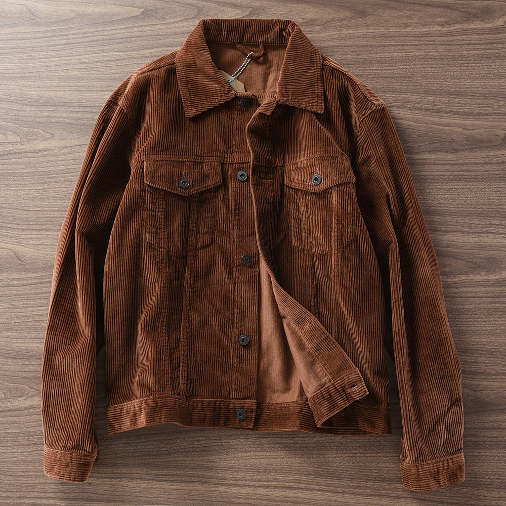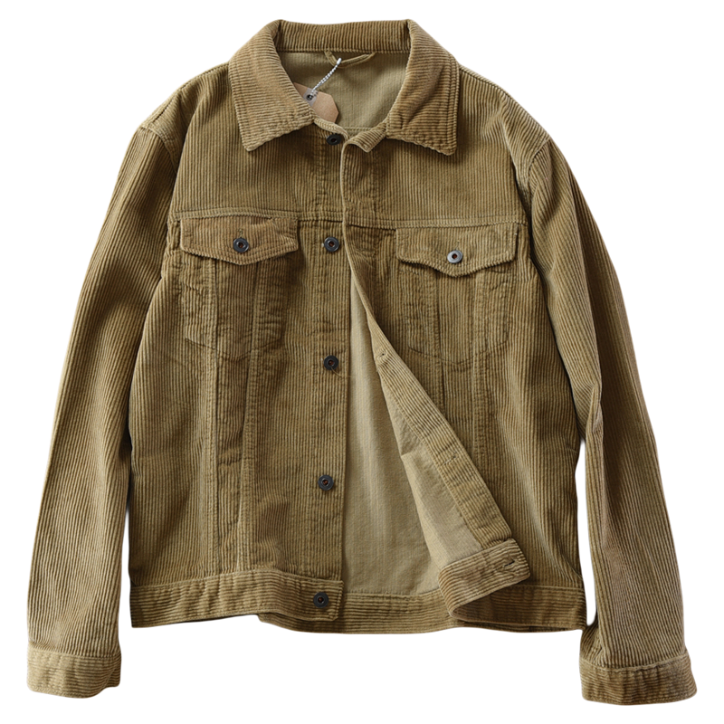 日系复古怀旧水洗秋冬款男士灯芯绒夹克外套宽松卡其色上衣男装潮