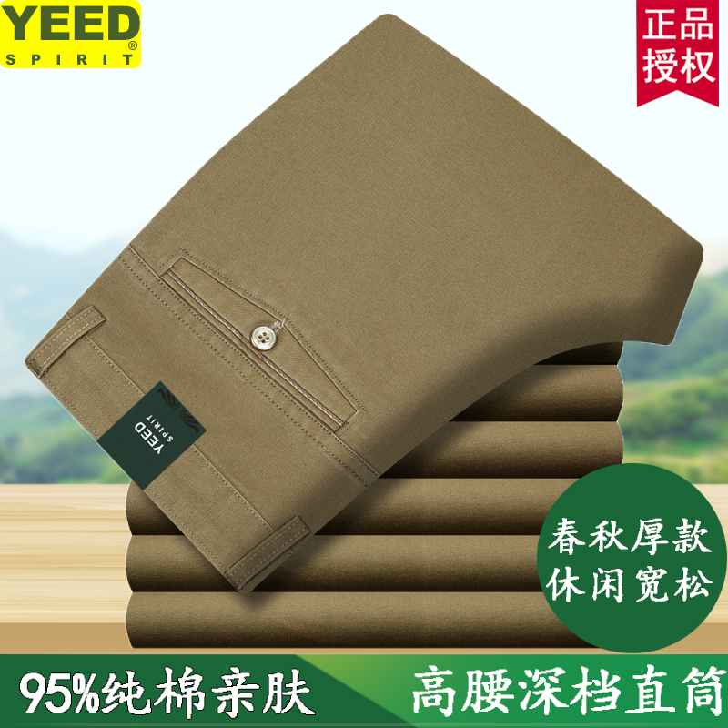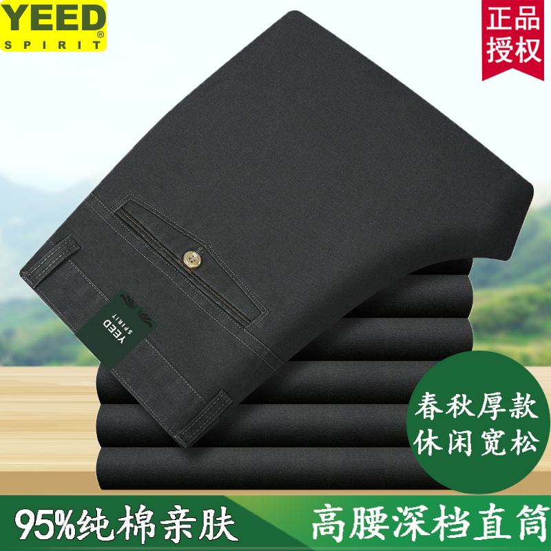 2025新款纯棉休闲裤商务休闲宽松男士直筒男裤春秋厚款长裤子高腰