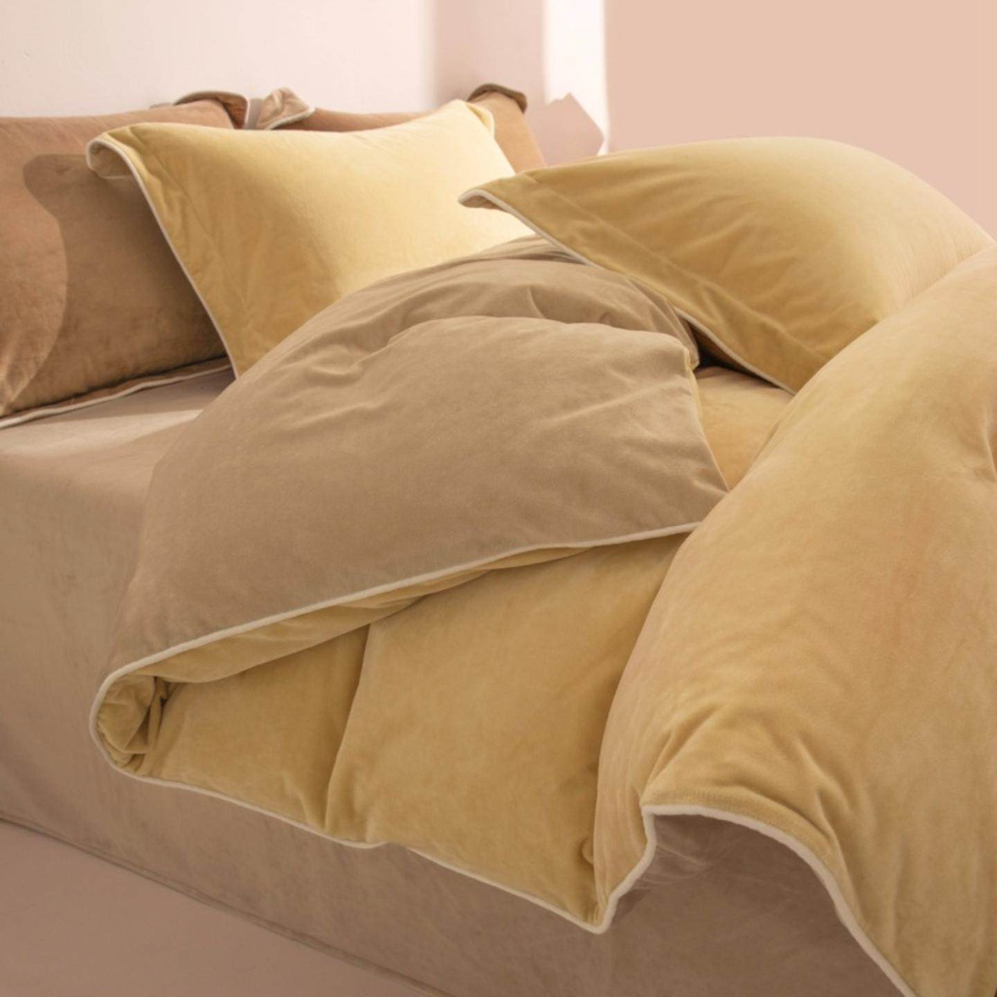 类加厚婴儿绒床品四件套纯色双拼简约麻绳滚边工艺件套及单被套