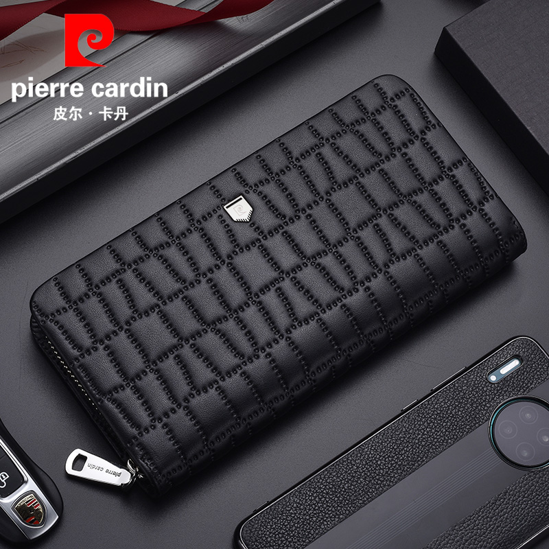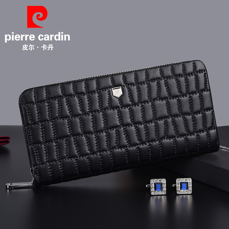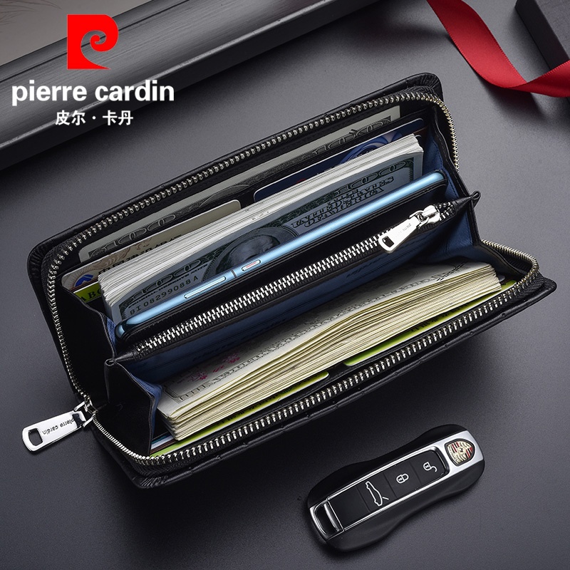 皮尔卡丹男手包真皮时尚手拿包牛皮长款拉链钱包男真皮休闲手抓包