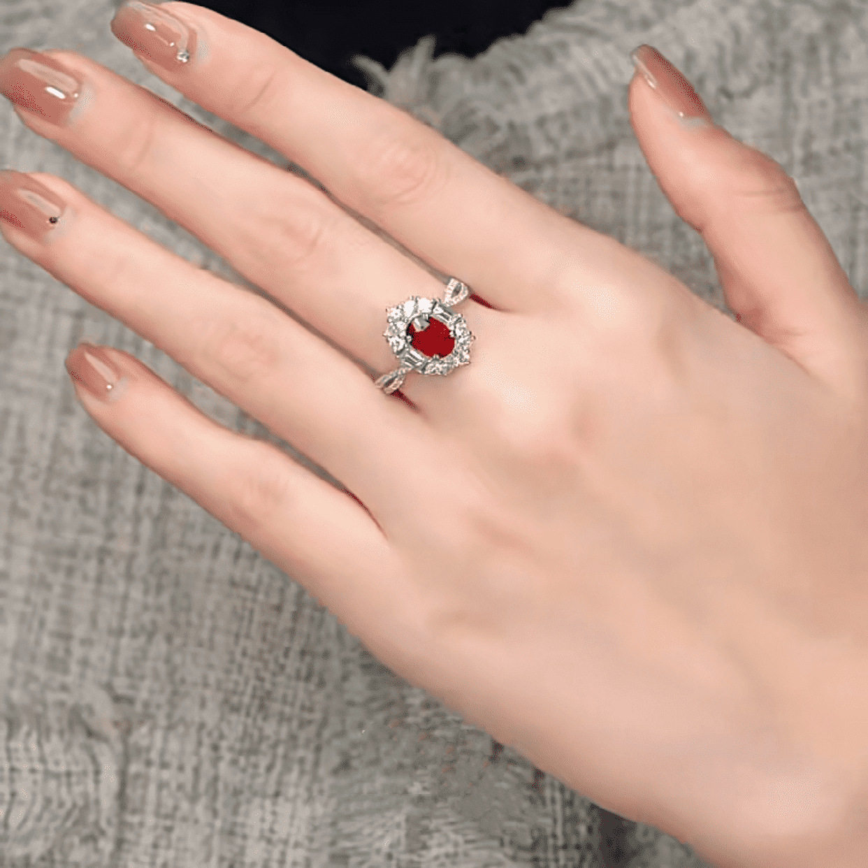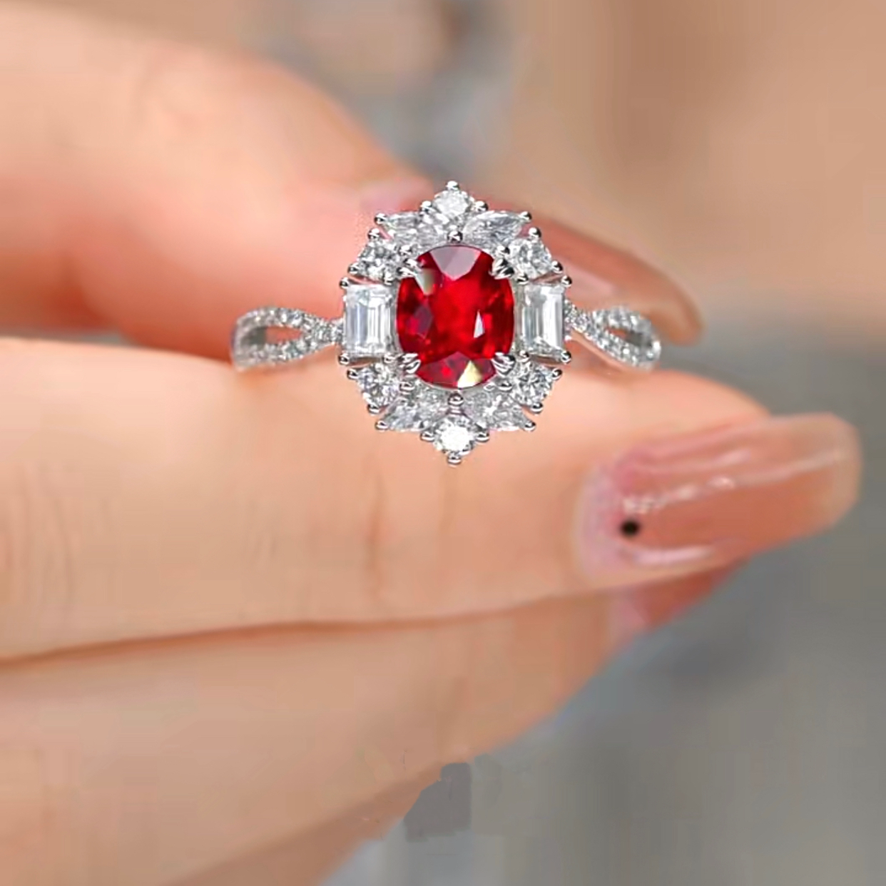 18K金培育红宝石戒指女时尚满钻