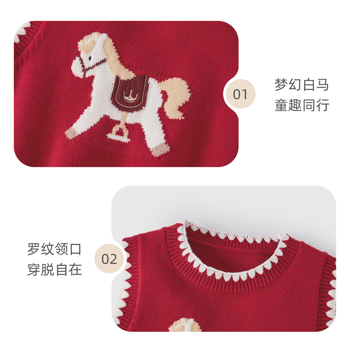 宝宝针织马甲儿童毛衣春秋婴儿红色毛线衣冬小童毛织坎肩女童背心