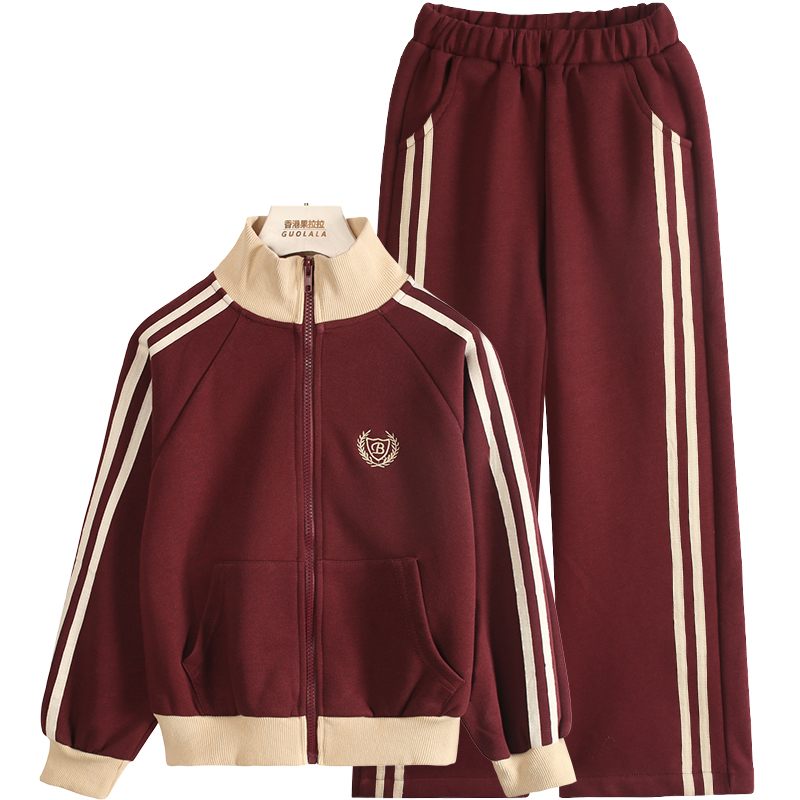 果拉拉女童运动套装棒球服外套长裤两件套2025新款春秋装大童衣服