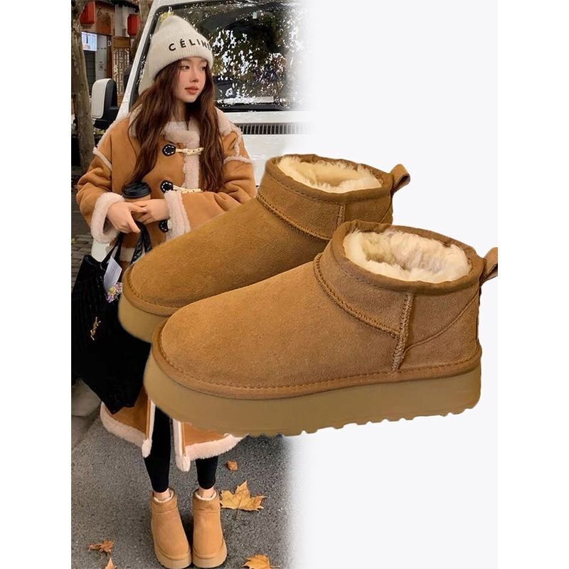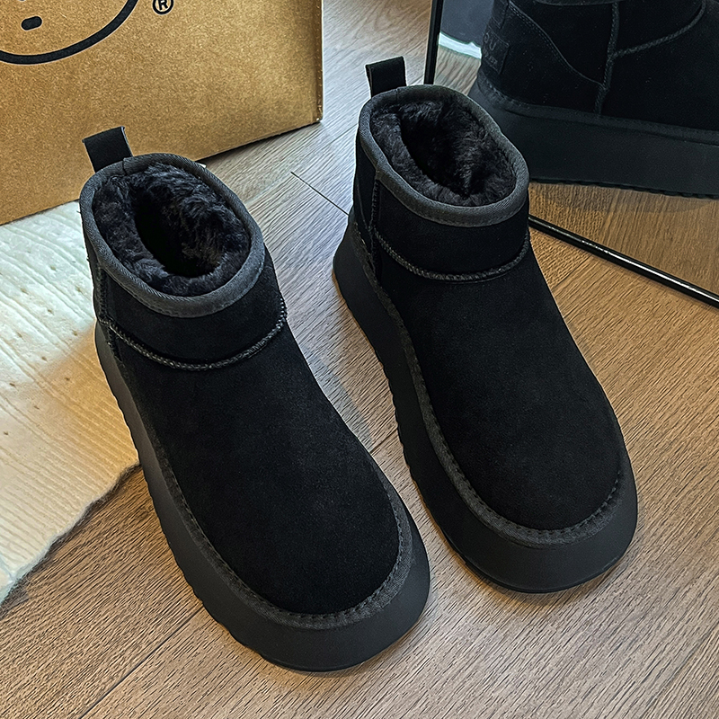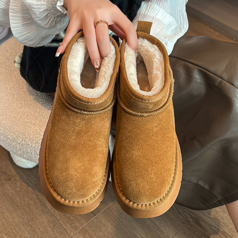 真皮 5CM 小个子冬季加厚保暖雪地靴女防水韩版秋冬短筒加绒棉鞋