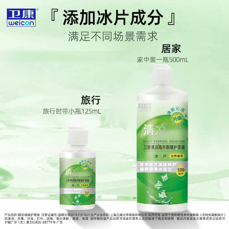卫康隐形近视眼镜清凉型护理液500ml+125ml多功能美瞳药水除蛋白