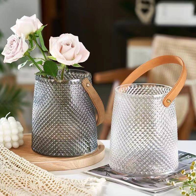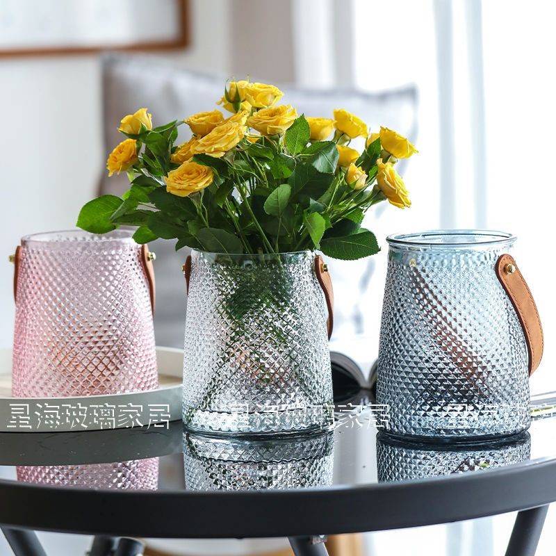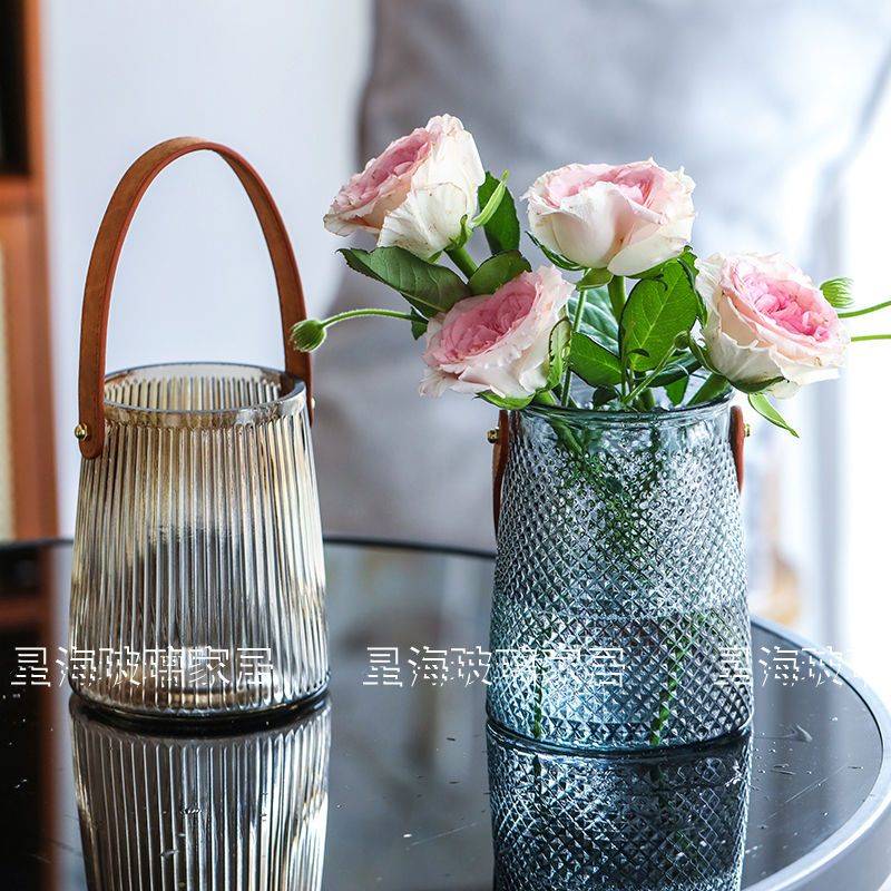 极速轻奢手提e玻璃花瓶简约水培鲜花插干花花瓶创意ins风客厅装饰