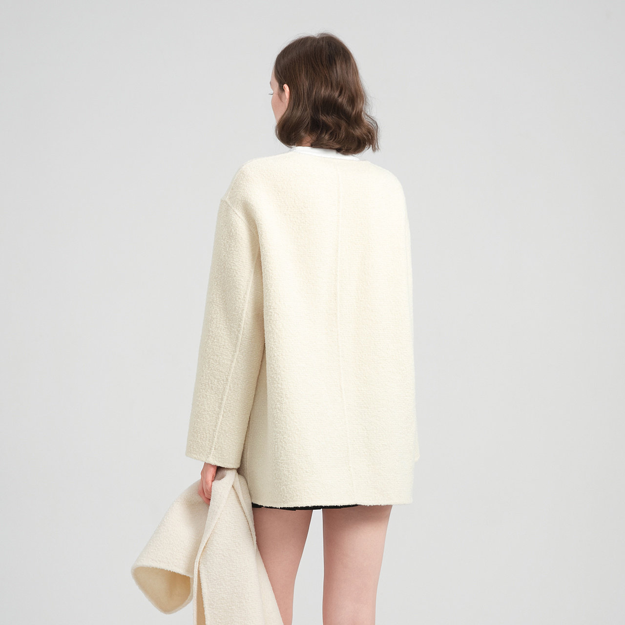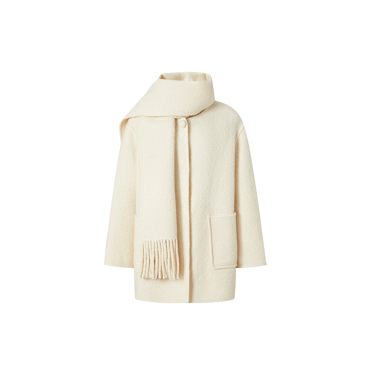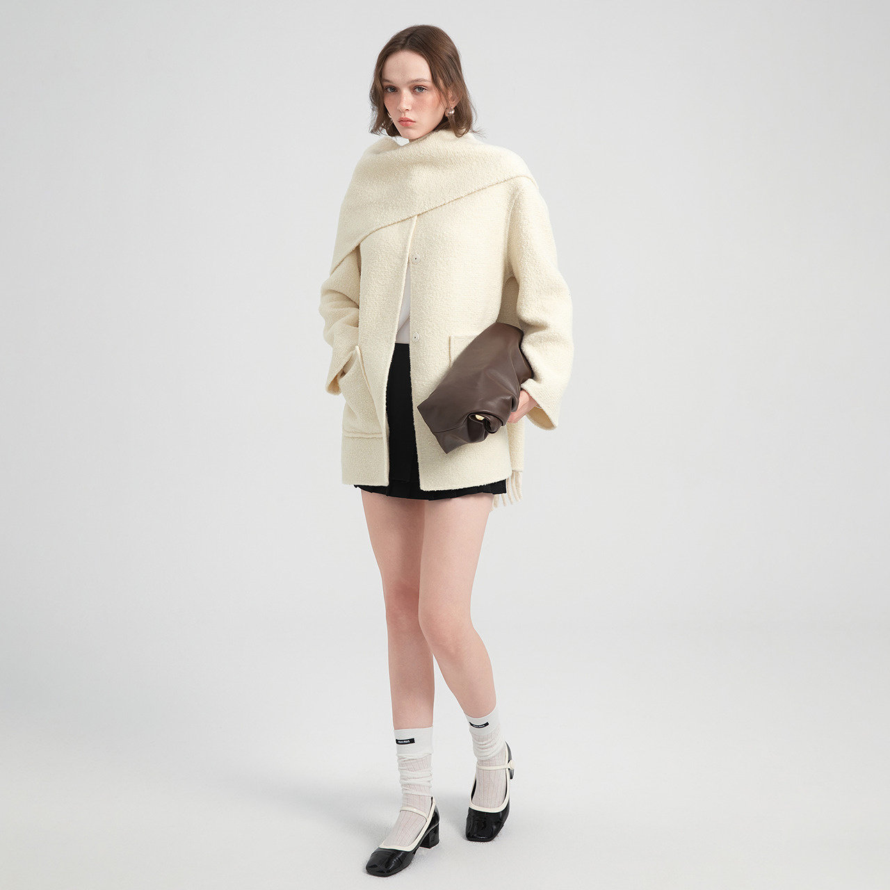 MOISSAC摩萨克2025冬新款休闲少女感流苏装饰围巾领口短款大衣女