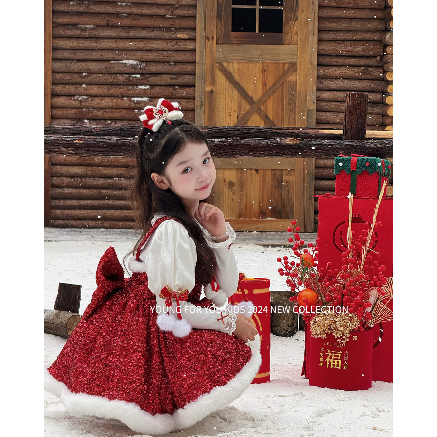 YFY冬季女童红色亮片公主裙连衣裙闪闪圣诞新年洛丽塔背心裙喜庆