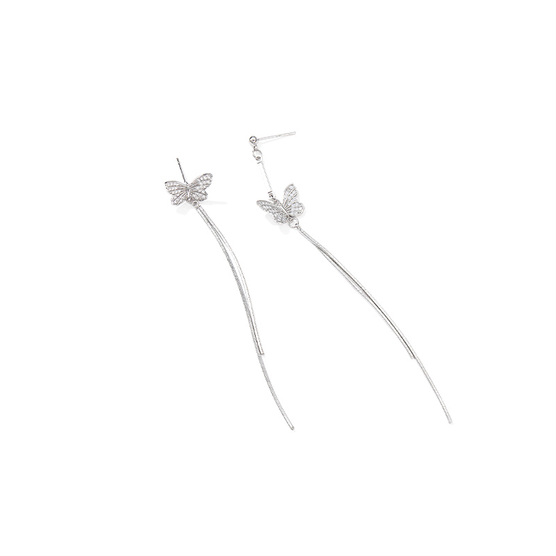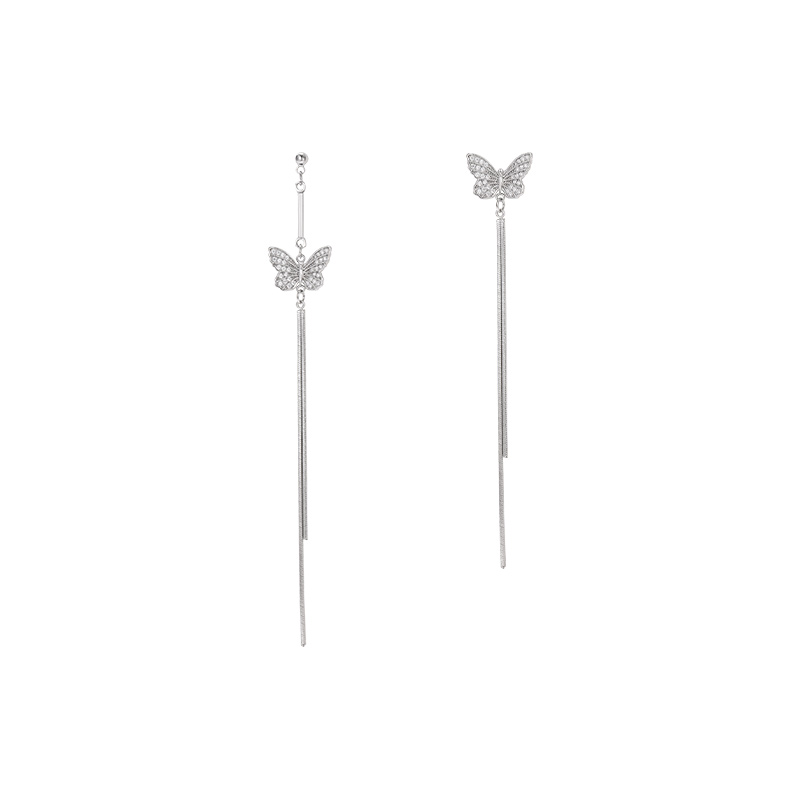 不对称蝴蝶流苏耳环女轻奢小众高级气质耳钉法式时尚洋气长款耳饰