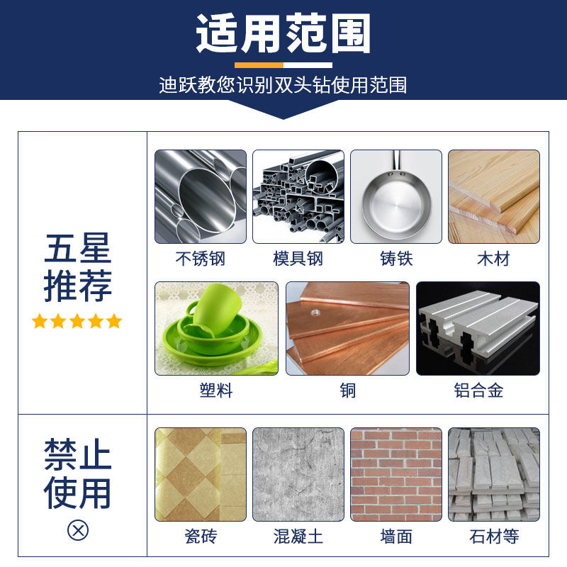 迪跃双头麻花钻头 钻铁不锈钢专用双头钻3mm3.2 3.5转头4 4.2 5.0