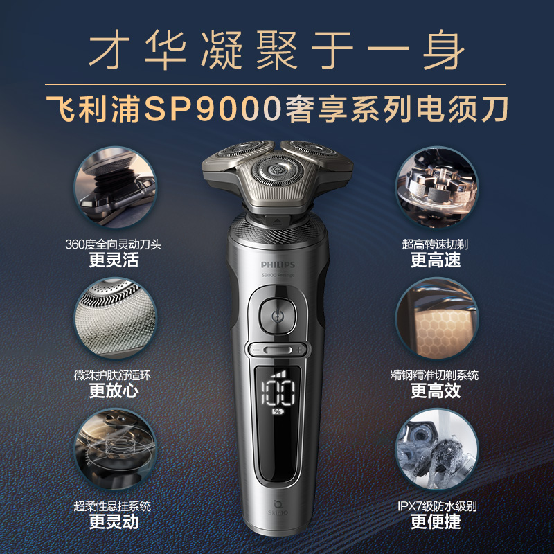 飞利浦剃须刀旋护9系SP9873整机荷兰进口电动刮胡刀送男友礼物