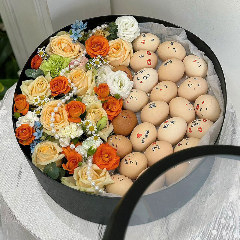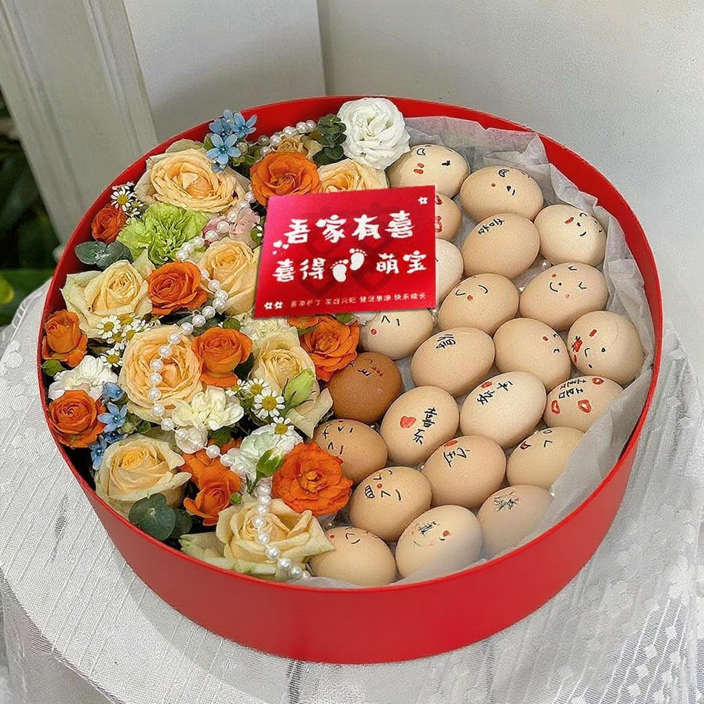 喜得宝宝月子鸡蛋水果鲜花礼品盒圆形黑色包装盒DIY材料包送闺蜜