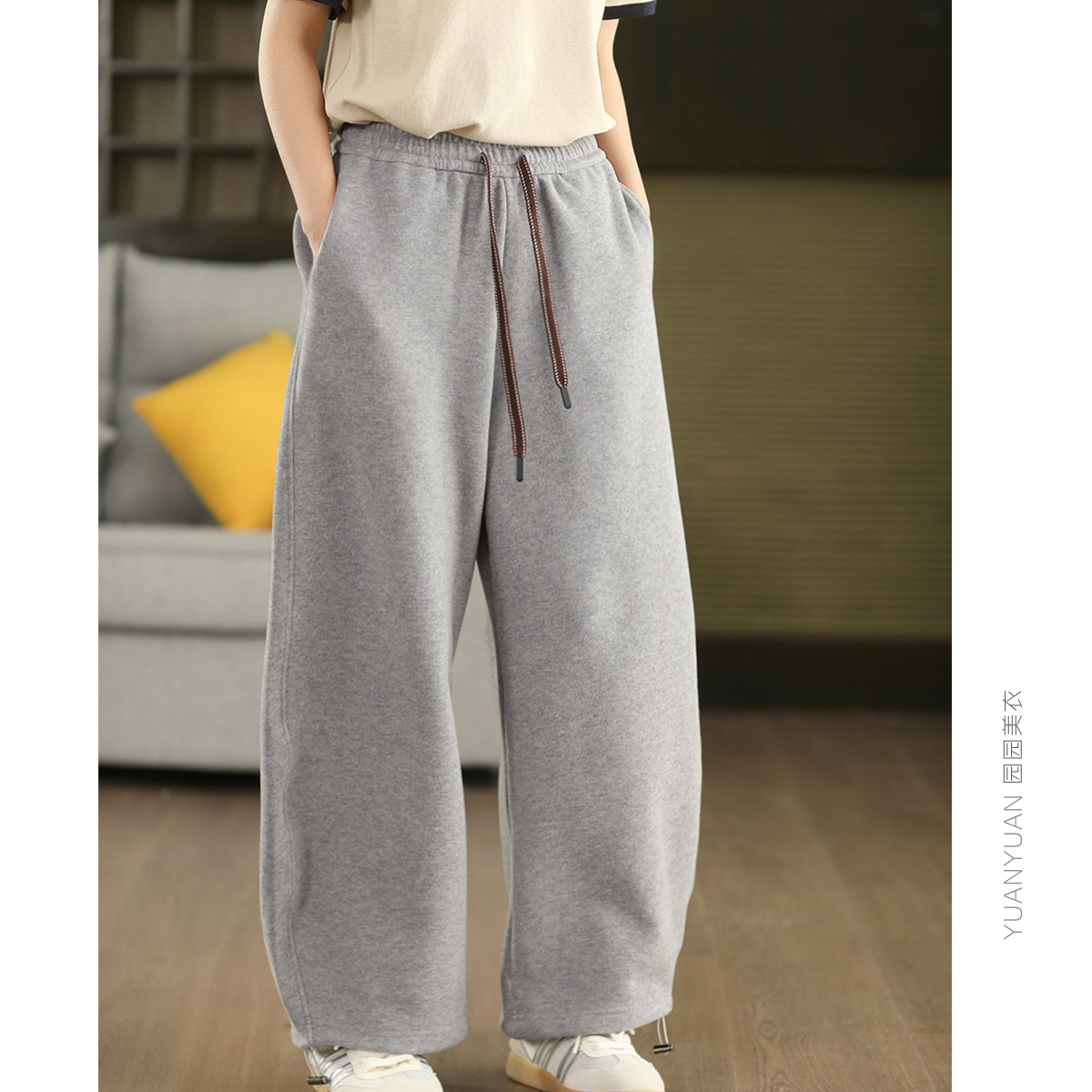 园园美衣高克重慕斯羊绒手感针织棉卫裤女显瘦休闲裤文艺运动长裤