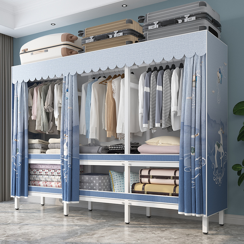 简易衣橱家用卧室大布衣柜免安装折叠全钢架结实耐用加粗加固加厚